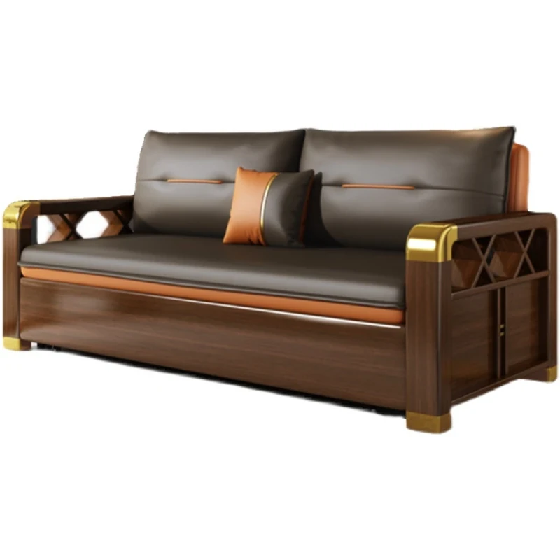 新中式デザインの北米産ブラックウォルナット無垢材ロハンベッド&コーヒーテーブルセット!多機能のソファベッドとしても活躍する、スタイリッシュで洗練された雰囲気を持つ一品です。おしゃれなモデルルームにぴったり!