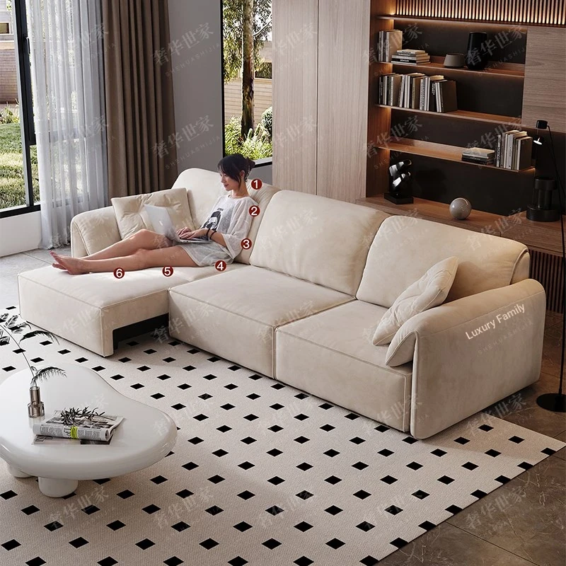 Creamy Style Electric Fabric Sofa with Elephant Ear Design - Versatile Adjustable Sofa Bed for Small Living Rooms, Perfect for Modern Spaces!