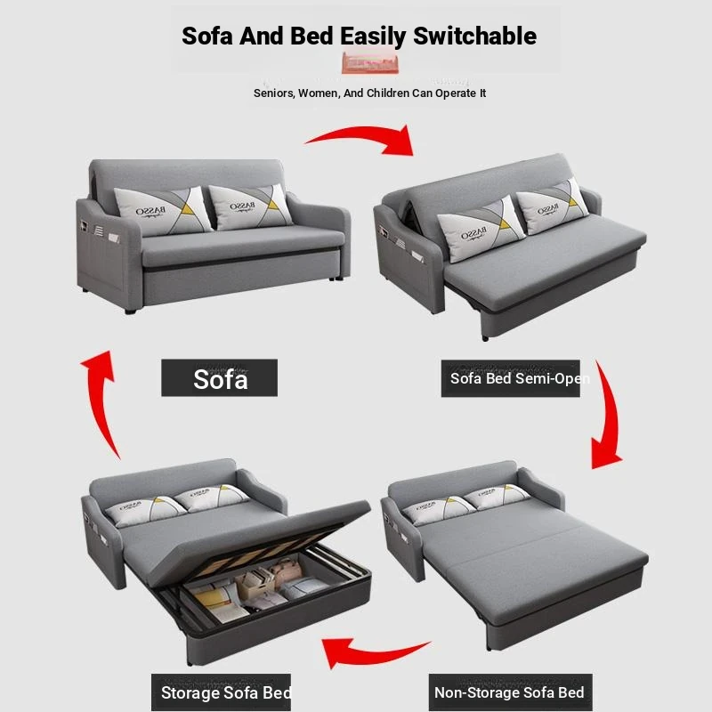 Multifunctional Foldable Sofa Bed with Storage - Space-Saving C-Shaped Design for Small Apartments, Ideal for Minimalist Living Rooms, Versatile for Single or Double Use, Made with Durable Tech Fabric.