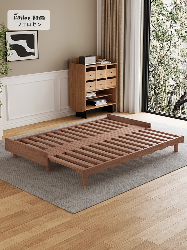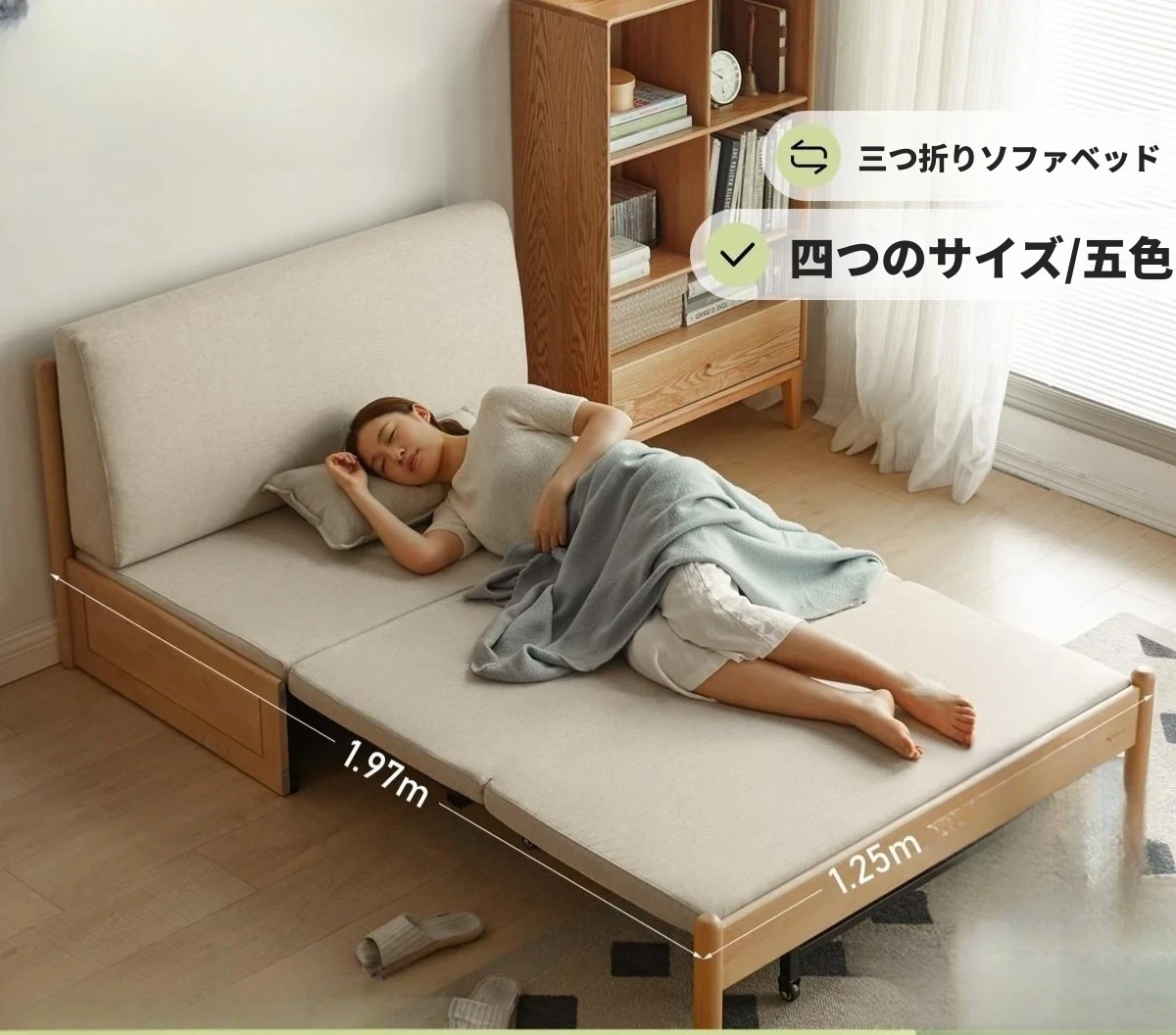 フェロサン無垢材ソファベッド 折りたたみ式 コンパクトな小型住宅に最適 アームレストなしの多機能スリーピングソファ 引き出し式で便利な伸縮ベッド!