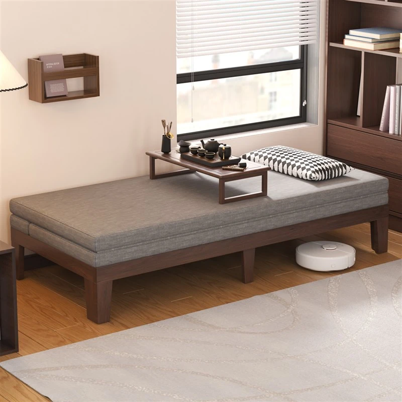 2025年新作!コンパクトな書斎用天然木製ソファベッド - 折りたたみ式で一人用、中華風デザイン、空間を有効活用できる伸縮式ソファベッド。小さなお部屋に最適!