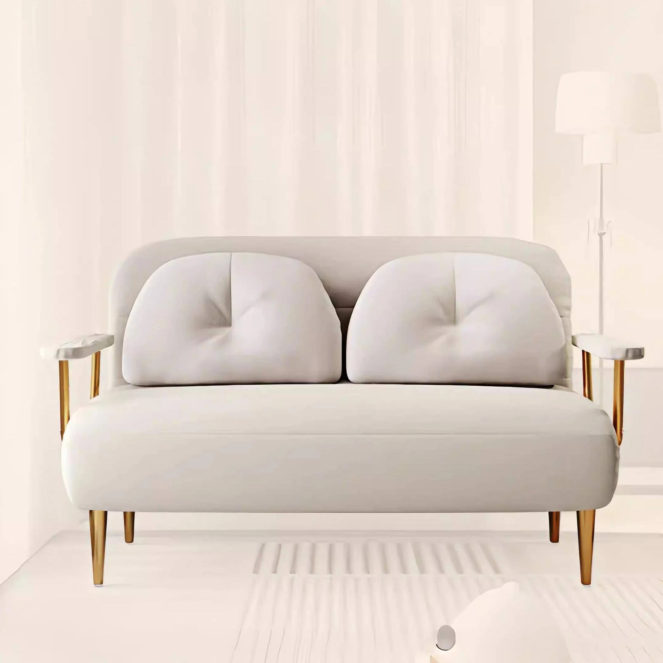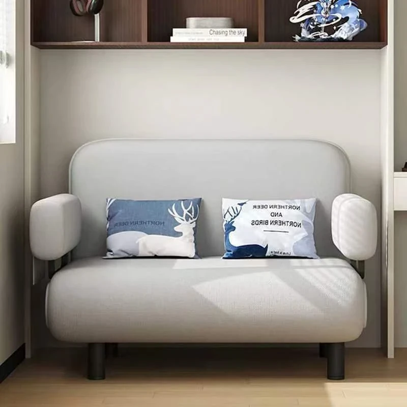 北欧風の小型リビング向け、多機能ダブルソファ!天然木使用のモダンデザイン、シンプルで折りたたみ可能なベッドとしても使える優れもの。狭い空間でも快適さとスタイルを両立!