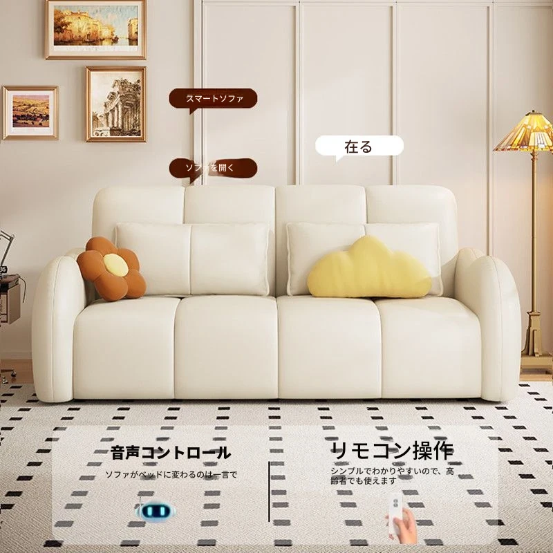 スマート本革電動ソファベッド - 一体型の多機能ソファベッド!小さなリビングに最適、折りたたみ式でスペースを有効活用。快適な寝心地とスタイリッシュなデザインで、あなたの生活空間をグレードアップ!