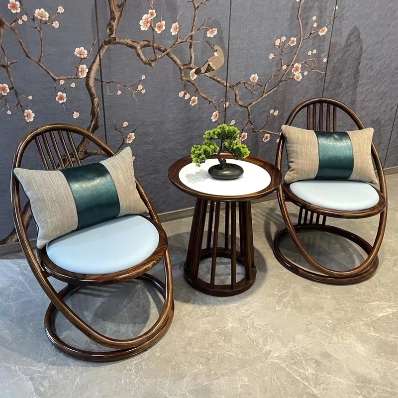 美しい新中式デザインのウー金木製本革レジャーチェア、リビング・バルコニー・寝室に最適な3点セット、優雅なスーリ虎椅子で贅沢なひとときを!