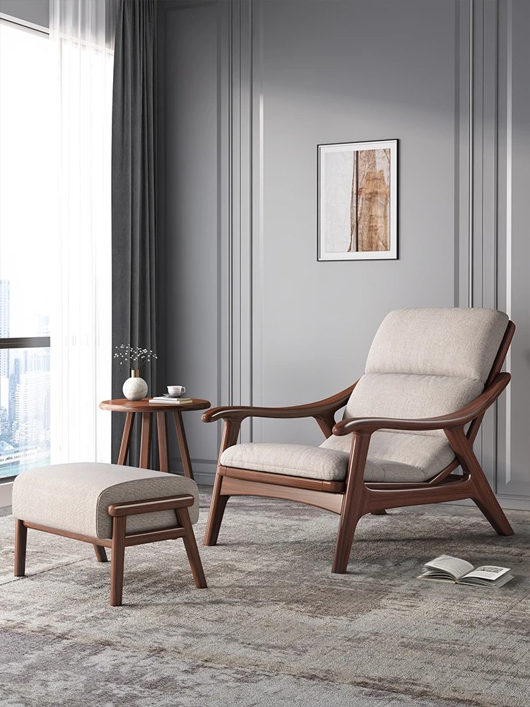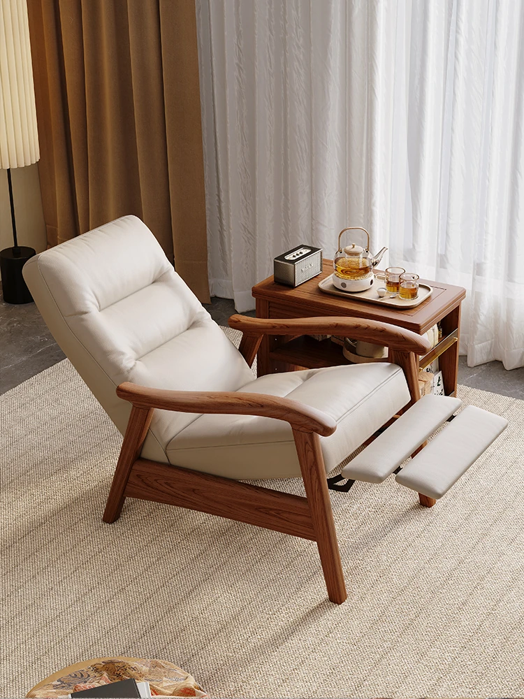 ウォールナット無垢材リクライニングチェア|一人掛けソファ|中式デザイン|リビング・バルコニーに最適|高齢者の昼寝にもぴったり|おしゃれで快適なラウンジチェア【送料無料】