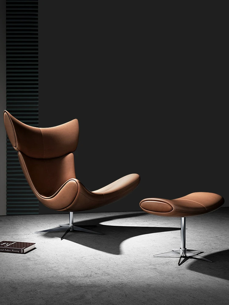 北欧スタイルのスネイルチェア - バルコニーに最適な回転式リラックスチェア!モダンでラグジュアリーな本革ソファチェア、シングルでくつろぎの時間を提供します。快適さとデザインを兼ね備えたお洒落なアイテムです。
