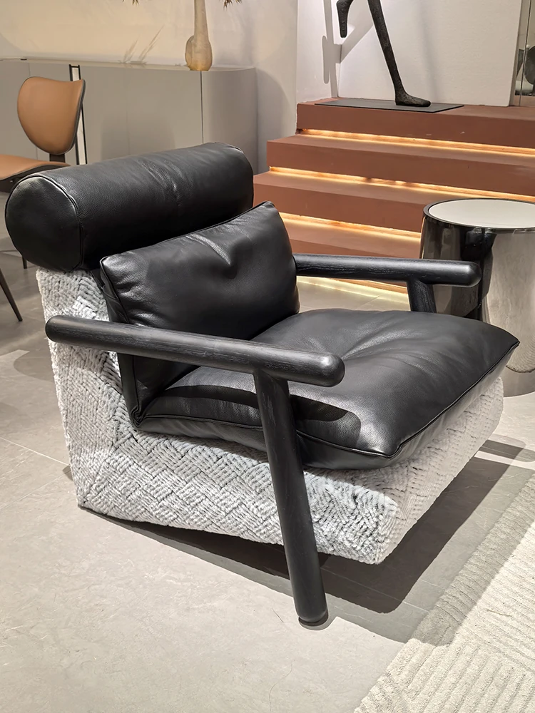 持度リビング全革一人掛けソファ・レジャーチェア イタリアンミニマルデザインのダウンソファ・リラックスチェア。おしゃれで心地よい、あなたのくつろぎ空間を演出します!