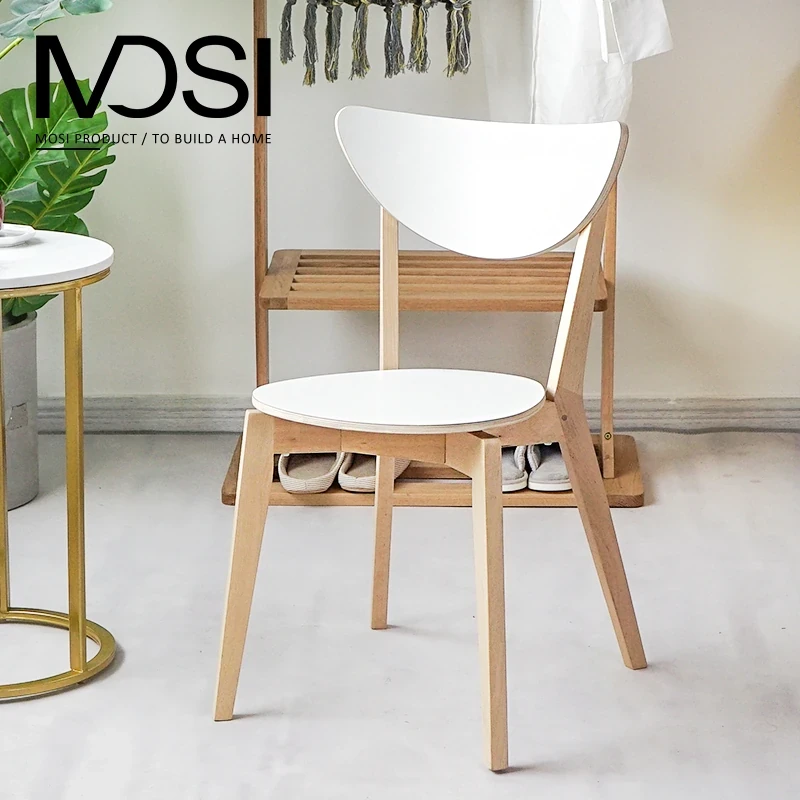 ノミラ正規版 北欧スタイルの無垢材ダイニングチェア シンプルでおしゃれな現代家用カフェチェア 白色のリラックスチェア 背もたれ付きで快適な座り心地!