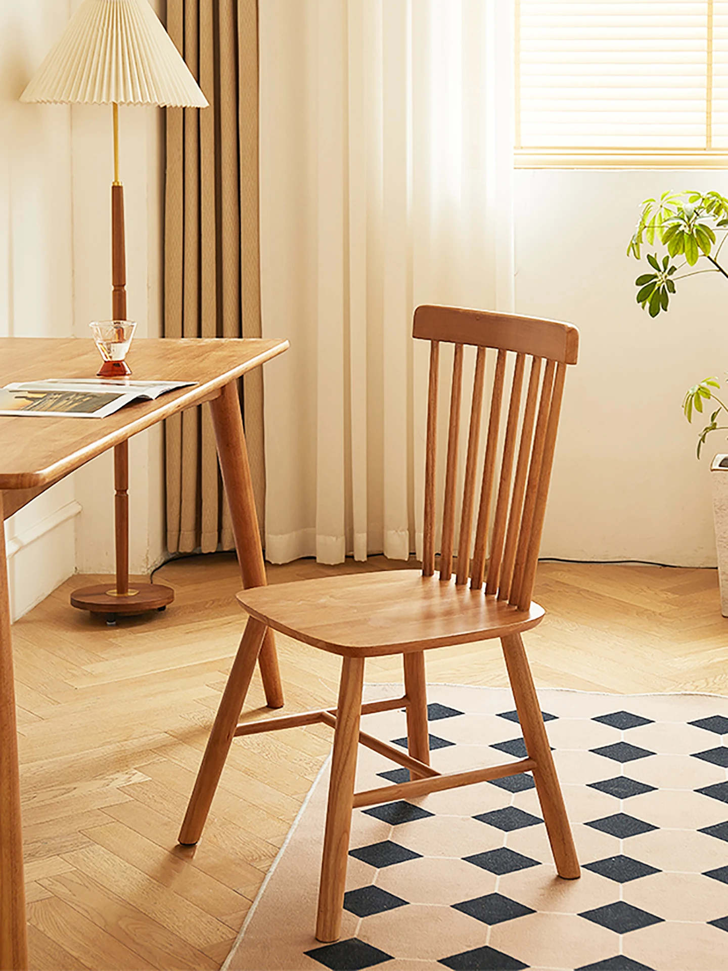 北欧風の天然木製ダイニングチェアとテーブルセット|コンパクトな小型住宅に最適|モダンシンプルなウィンザーチェア|魅力的なチェリーレッドのデザイン|書斎や食卓にぴったりなスタイリッシュなアイテム