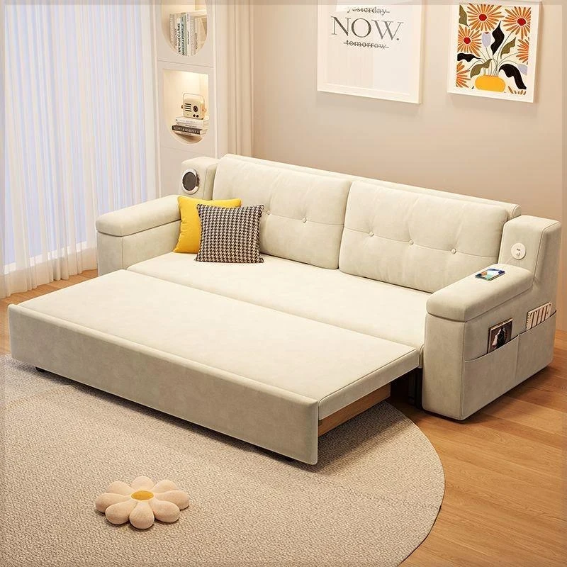 Nordic Ash Wood Solid Sofa with Storage - Modern Minimalist Fabric Couch for Small Living Rooms in Natural Wood Finish
