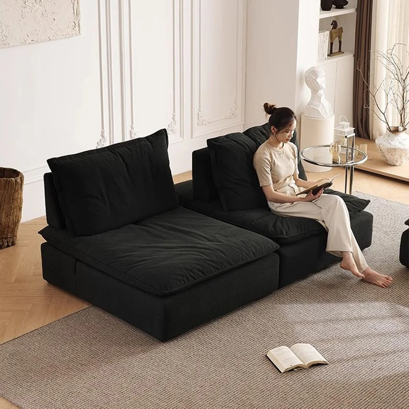 Modern Minimalist Retro Black Leather Puff Sofa Set for Small Living Rooms – Stylish Floating Design with Vintage Charm