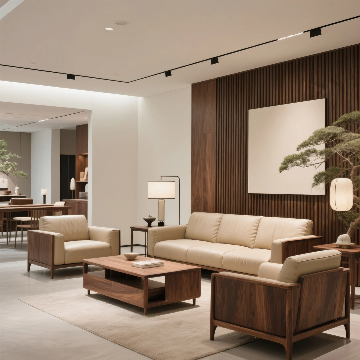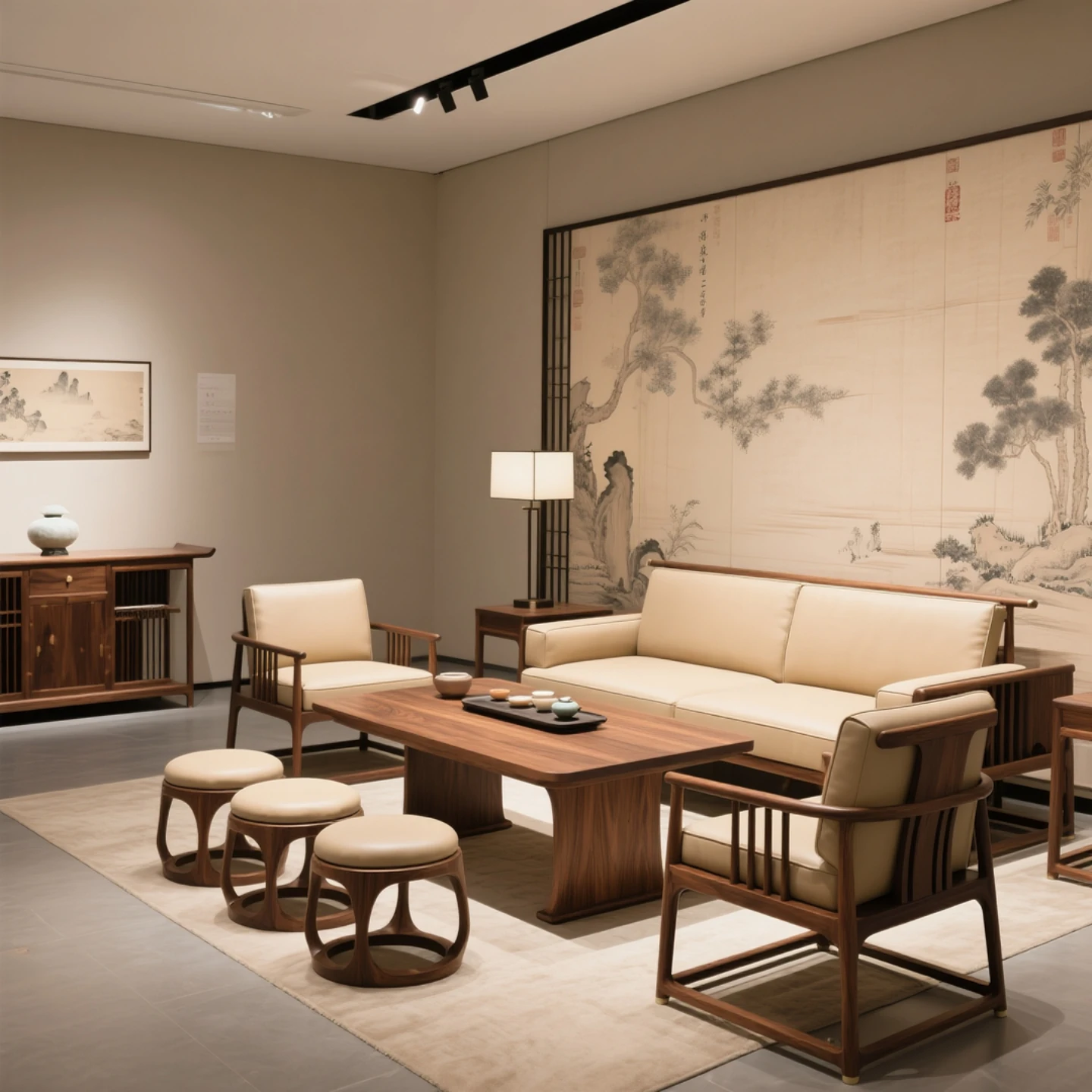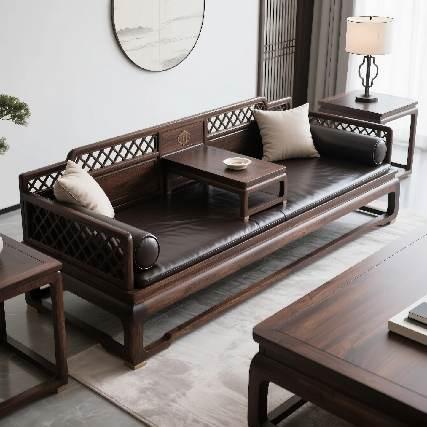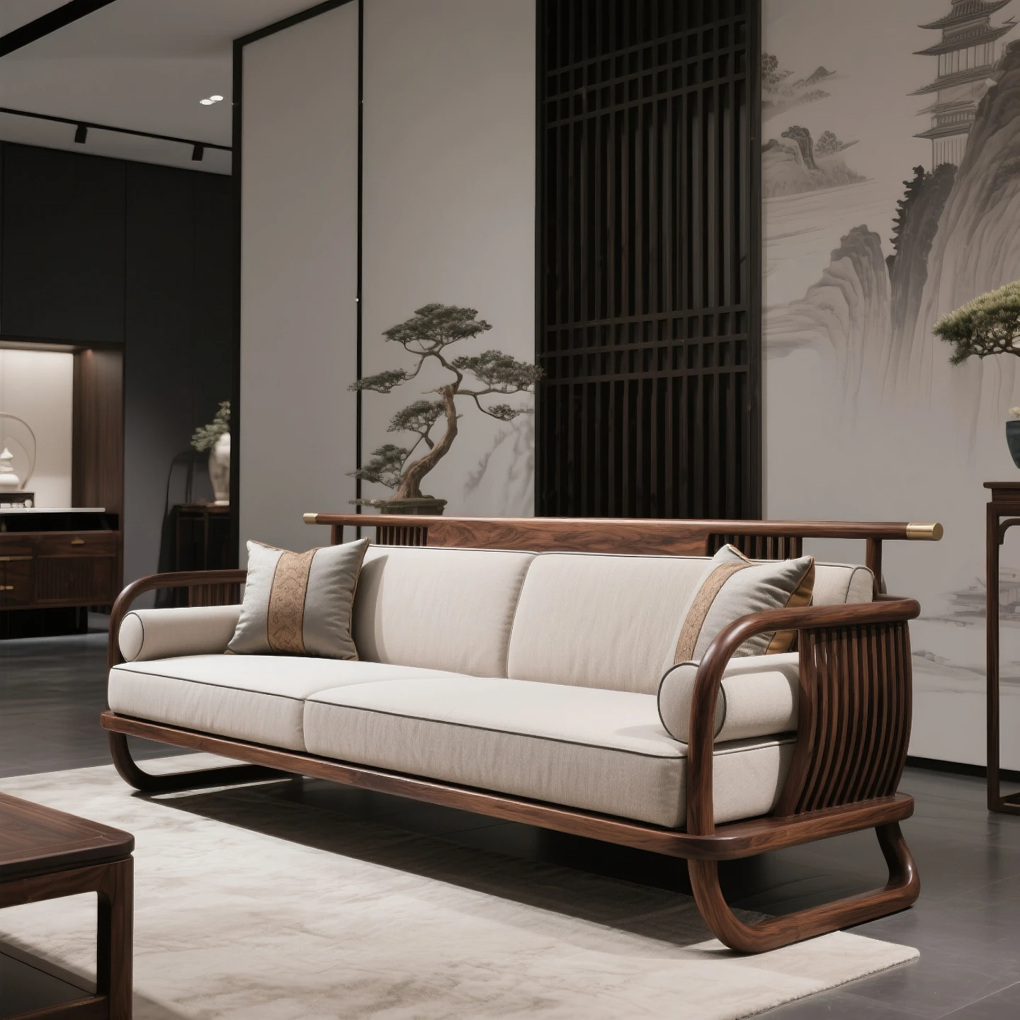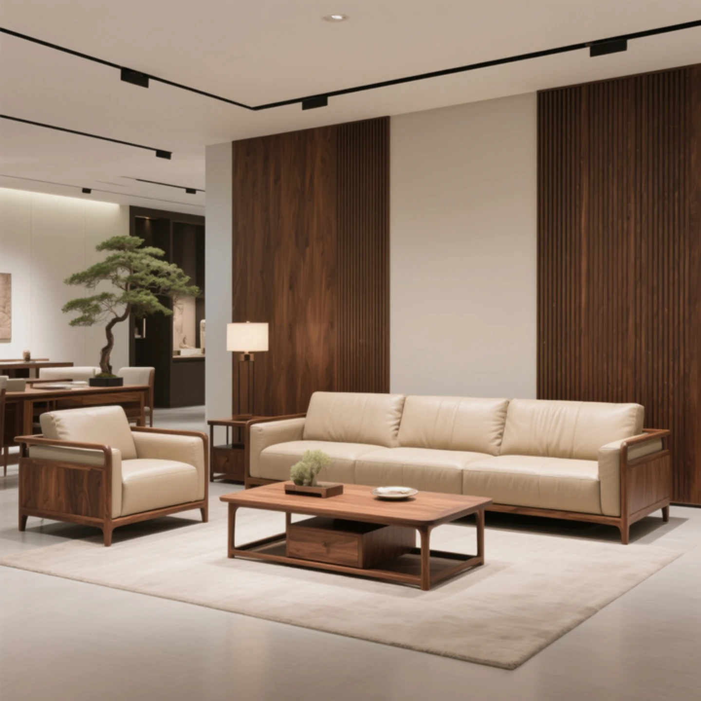 Stylish New Chinese-Style Sofa Set in North American Black Walnut – Elegant Solid Wood Living Room Seating with Song Dynasty Aesthetics for Office Reception and Guest Areas