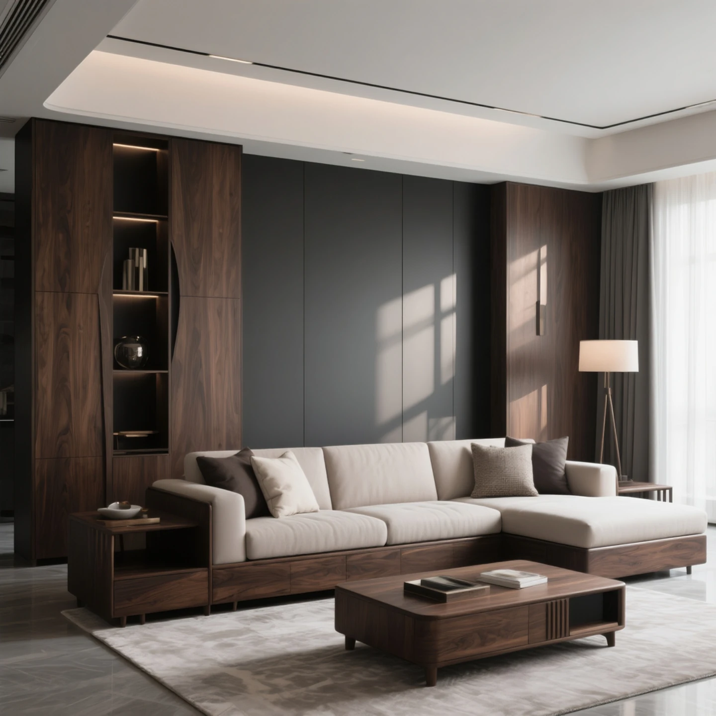Premium North American Black Walnut Modern Minimalist Fabric Sectional Sofa – Luxurious Corner Sofa with Solid Wood Chaise for Your Living Room