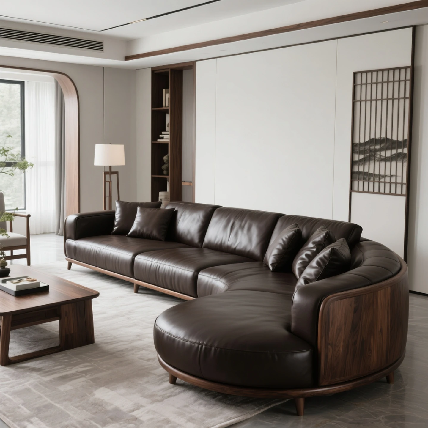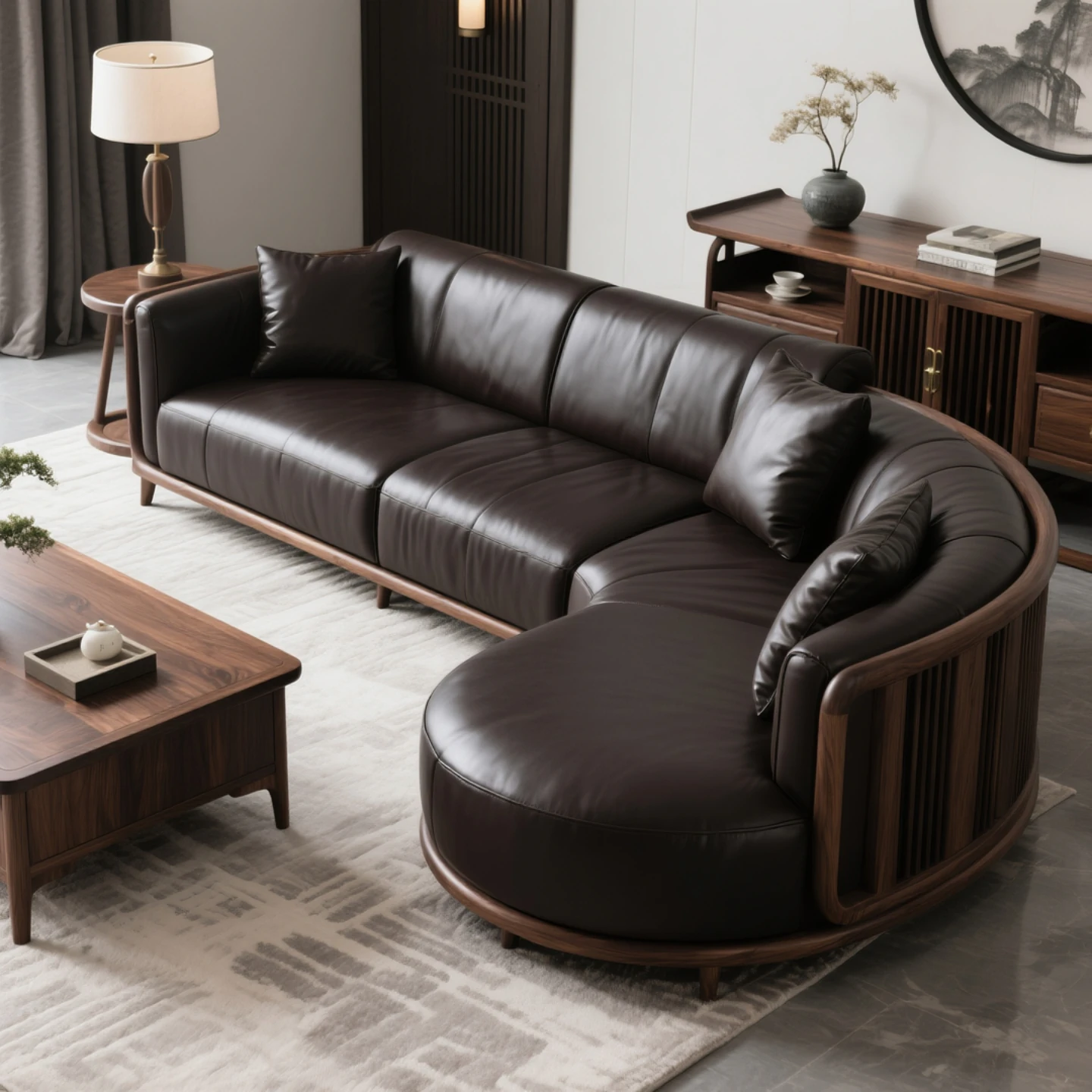 New Chinese Style North American Black Walnut Solid Wood Leather Sofa - Creamy Italian Minimalist Luxury Moon Arc Sofa