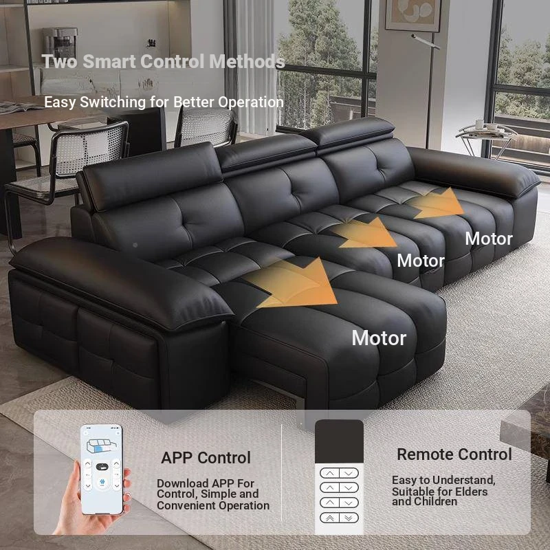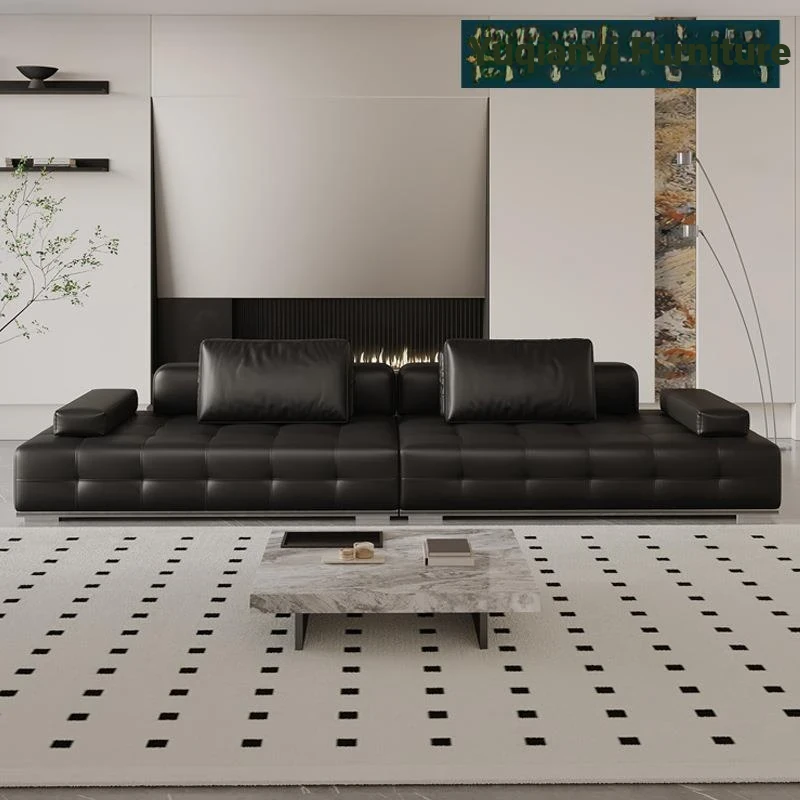 Elegant Modern Italian Leather Sofa Bed A2560# in Black - Piano Key Design for a Chic and Luxurious Living Space, Perfect for New Homeowners!