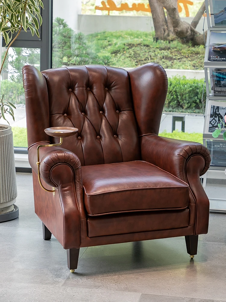Luxury Modern Single Sofa Chair - Designer Vintage Tiger Chair for American Style Home Office, Hotel, and Cigar Lounge, Crafted from Genuine Leather