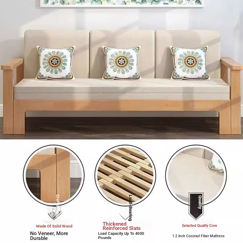 Multifunctional Solid Wood Sofa Bed - Foldable, Expandable, and Space-Saving Design for Small Living Rooms - Perfect for Single or Double Use!