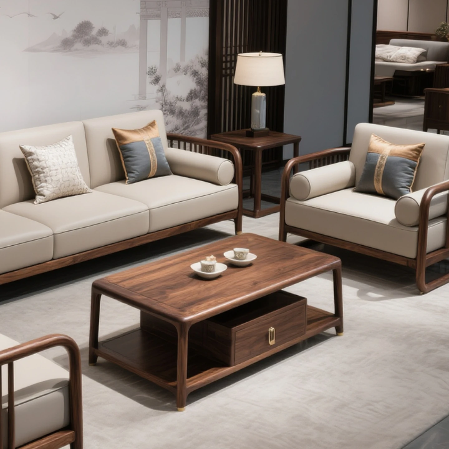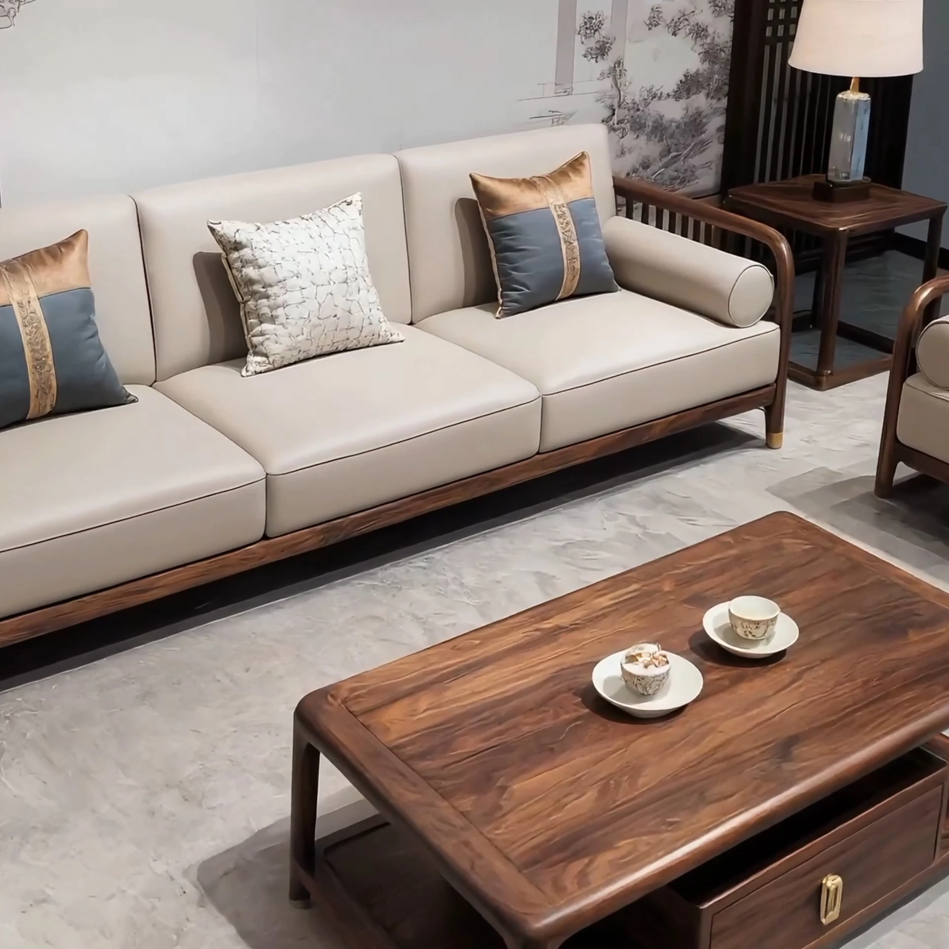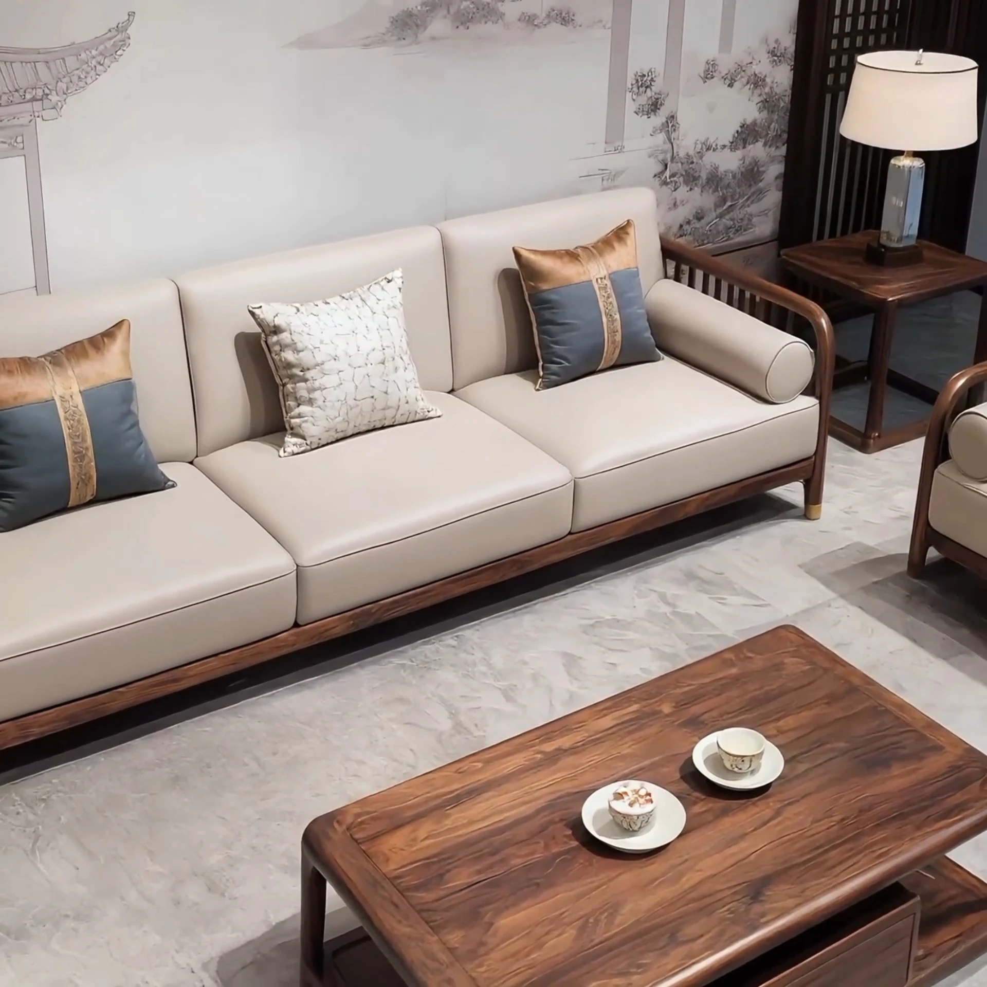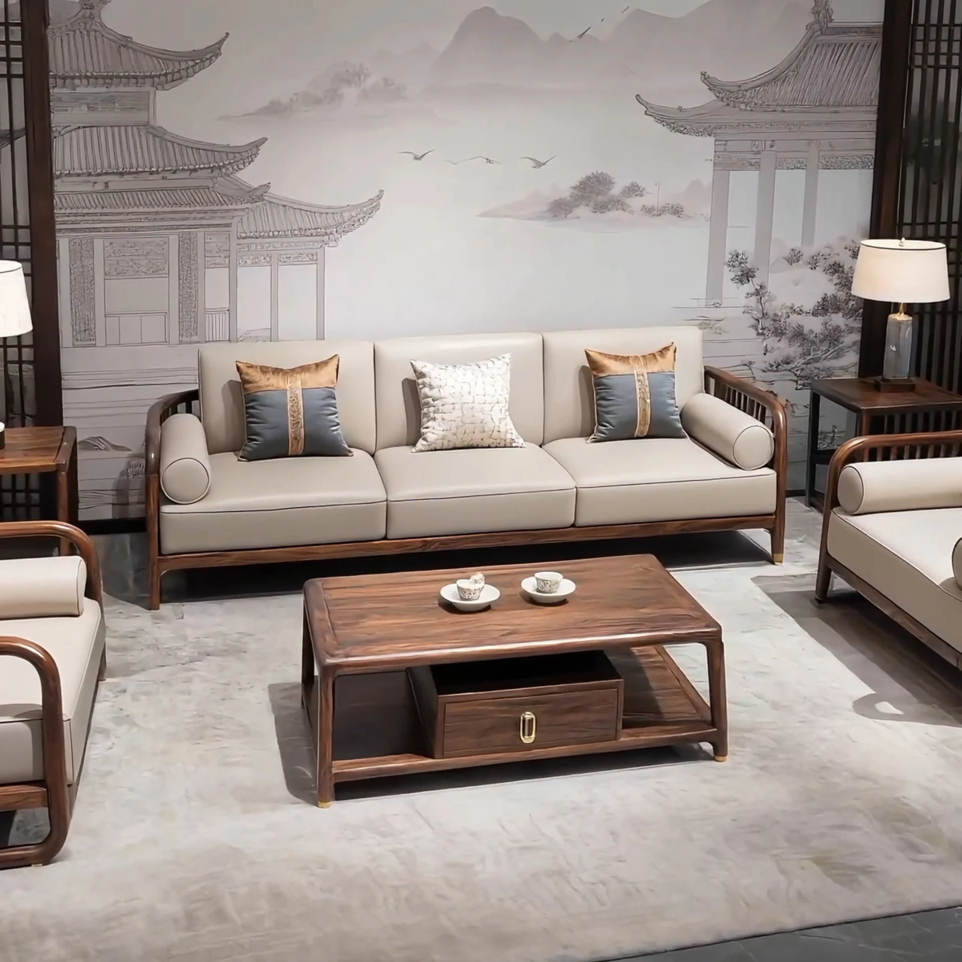2025 New Chinese Style Solid Wood Sofa Set - North American Black Walnut Furniture for Living Room, Elegant Song Dynasty Design