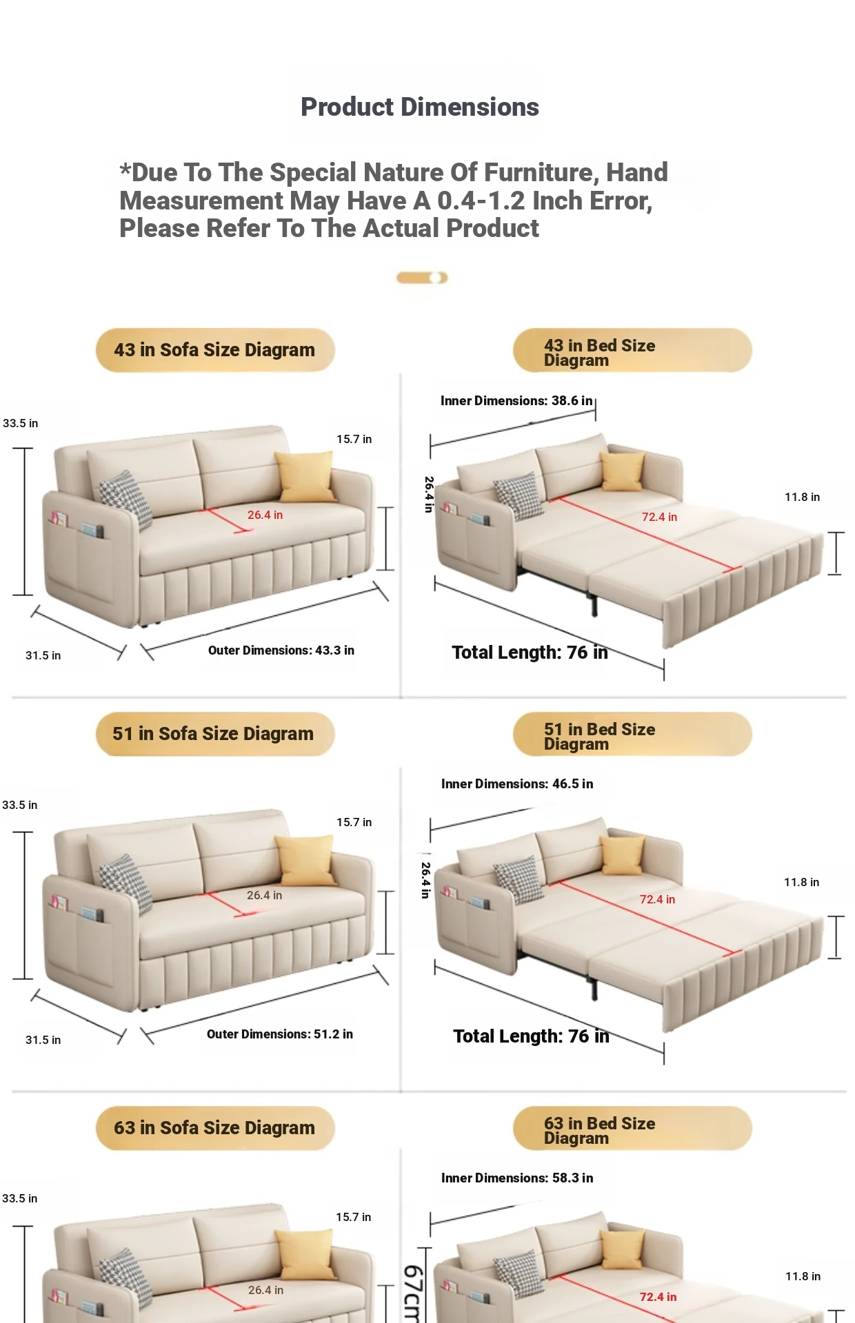 47.24 in 0.79in LaTeX +2.76in high density sponge without storage
