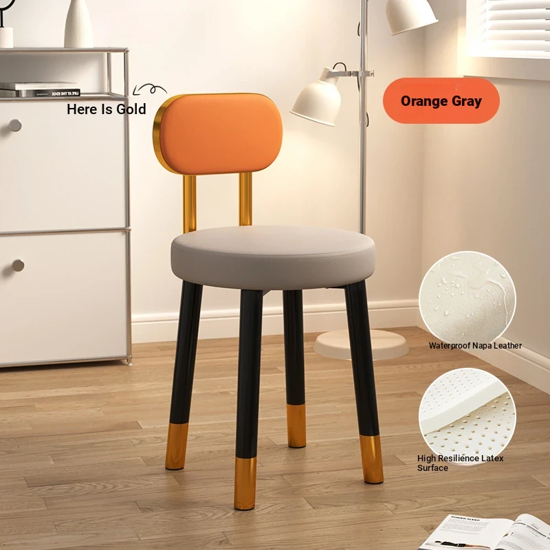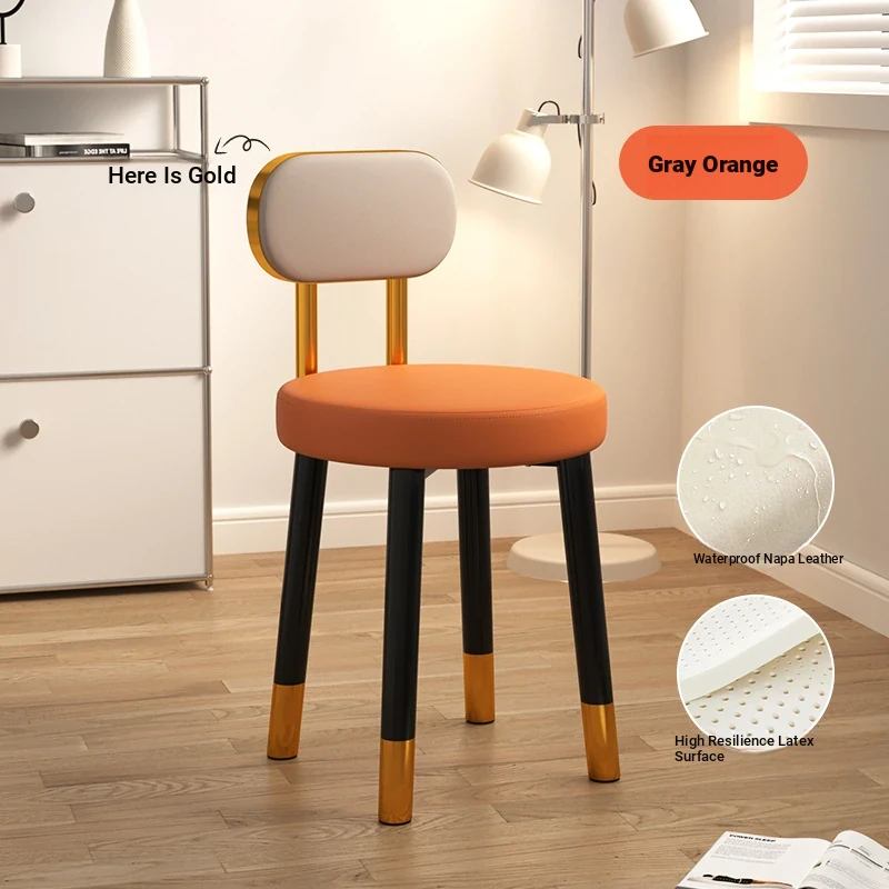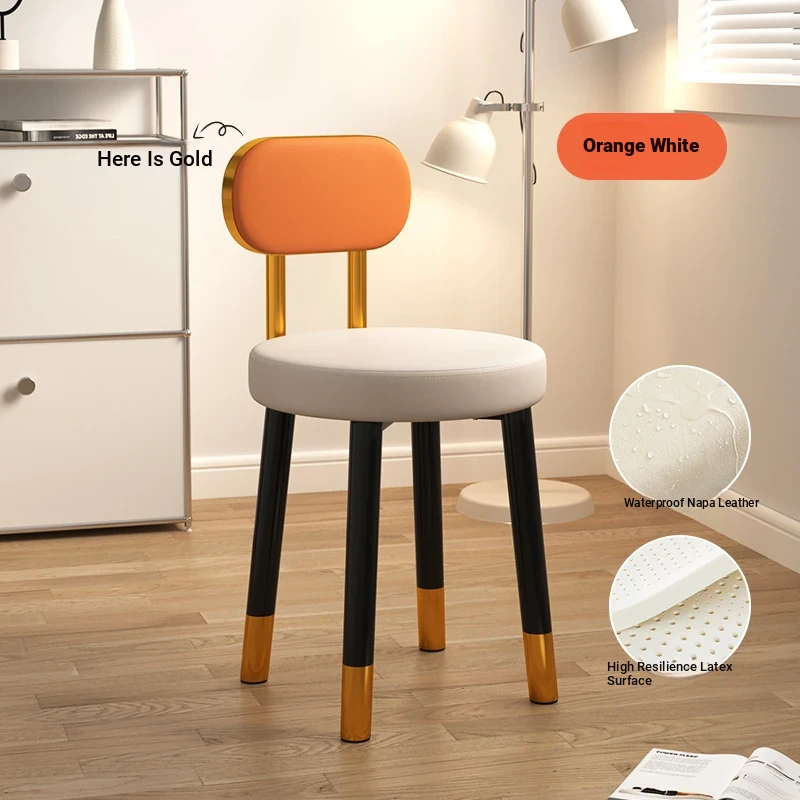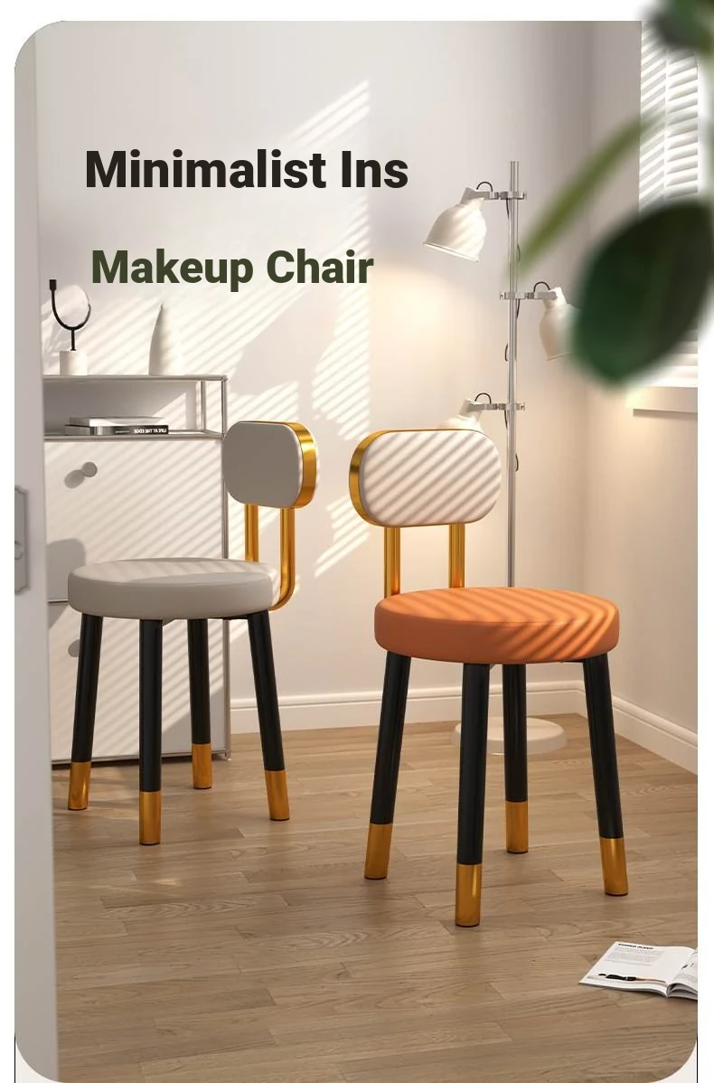 Elegant Luxury Makeup Chair - Stylish Modern Vanity Stool with Soft Backrest for Girls' Bedrooms, Perfect for Home Use.