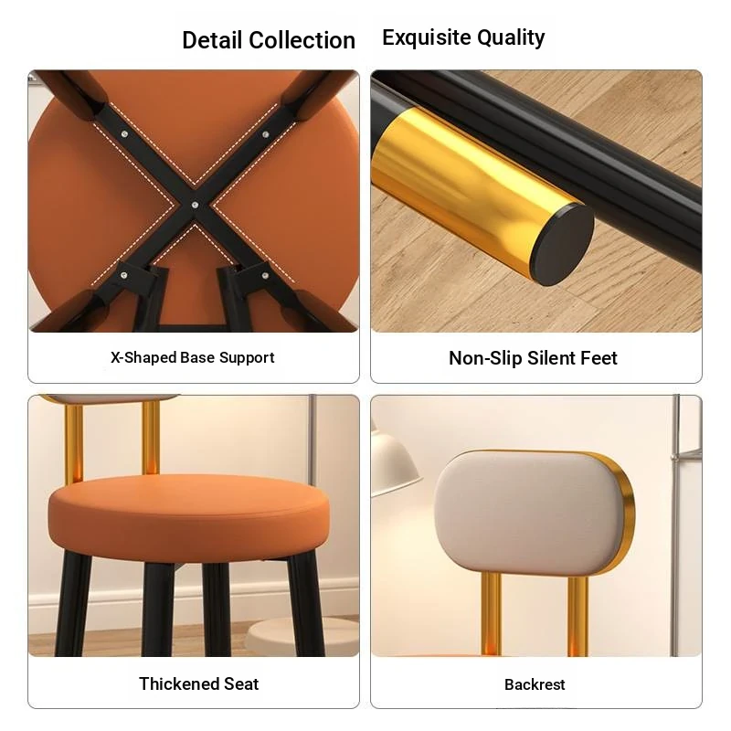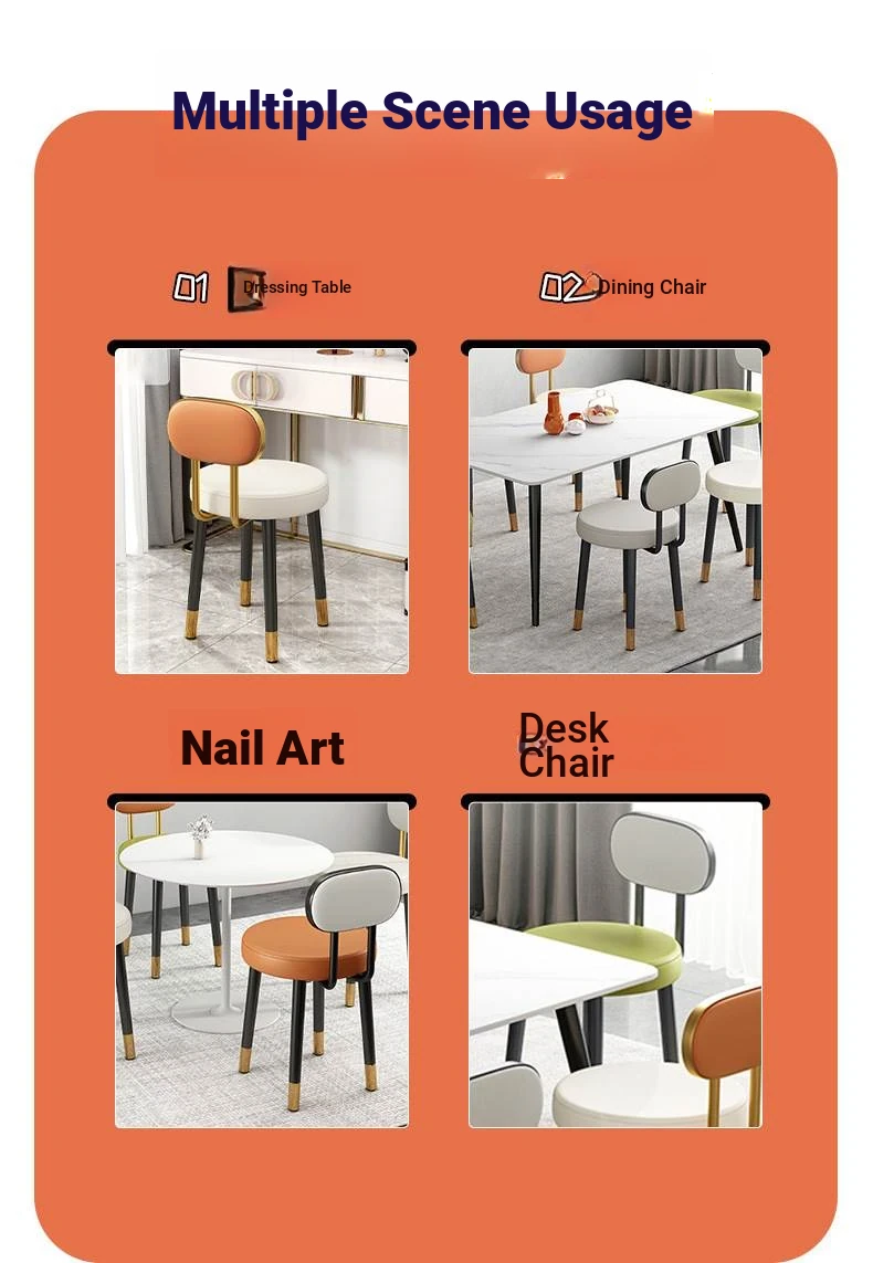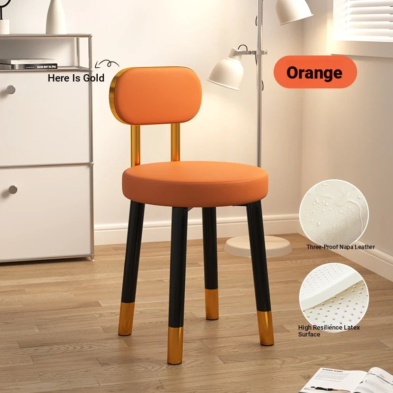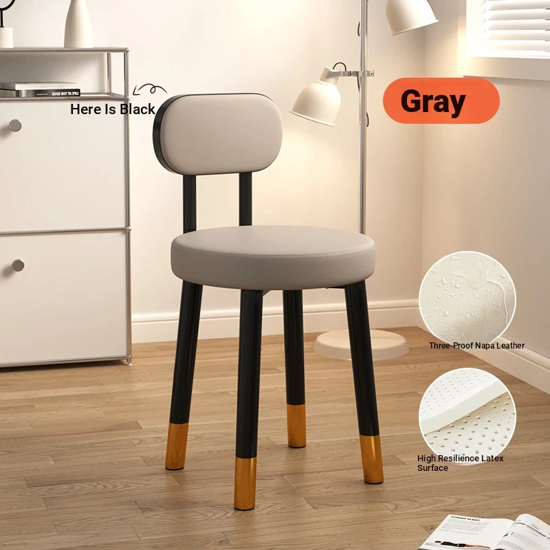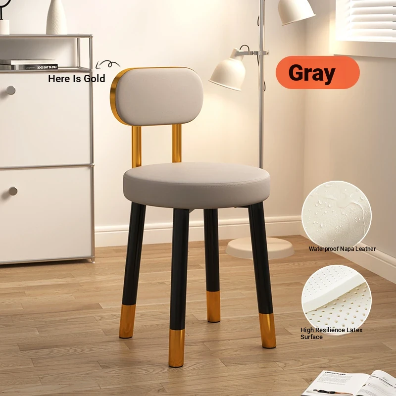 Elegant Luxury Makeup Chair - Stylish Modern Vanity Stool with Soft Backrest for Girls' Bedrooms, Perfect for Home Use.