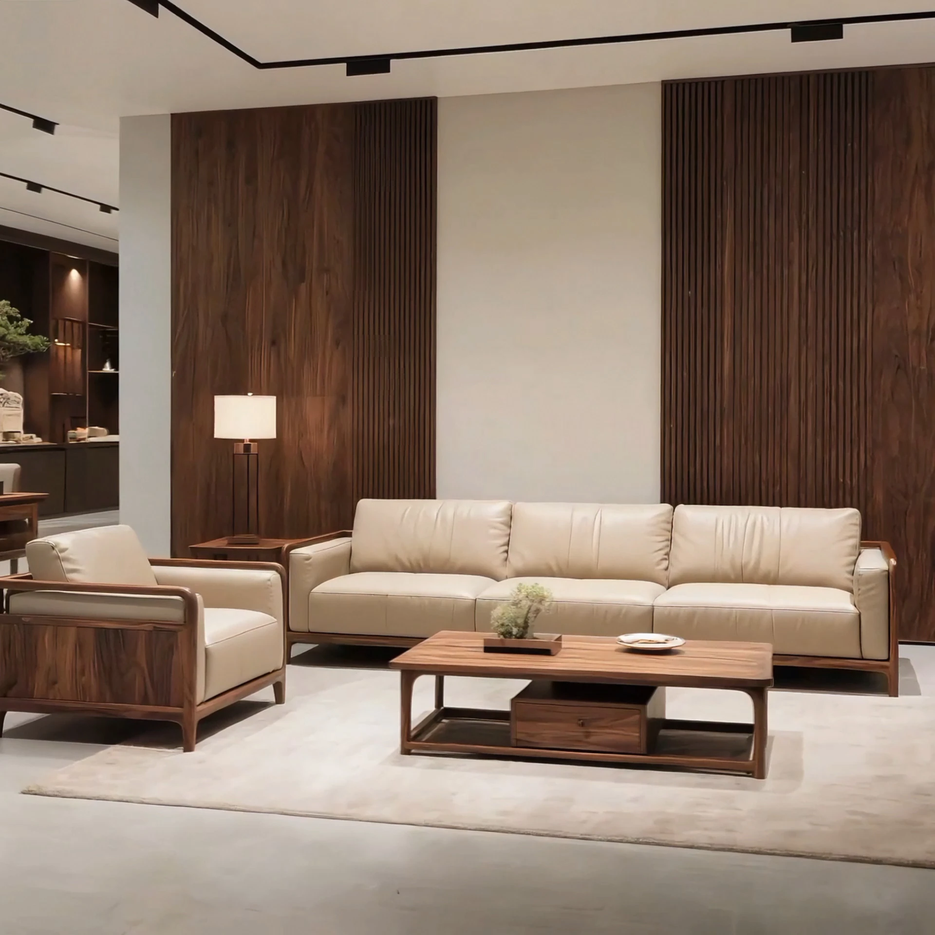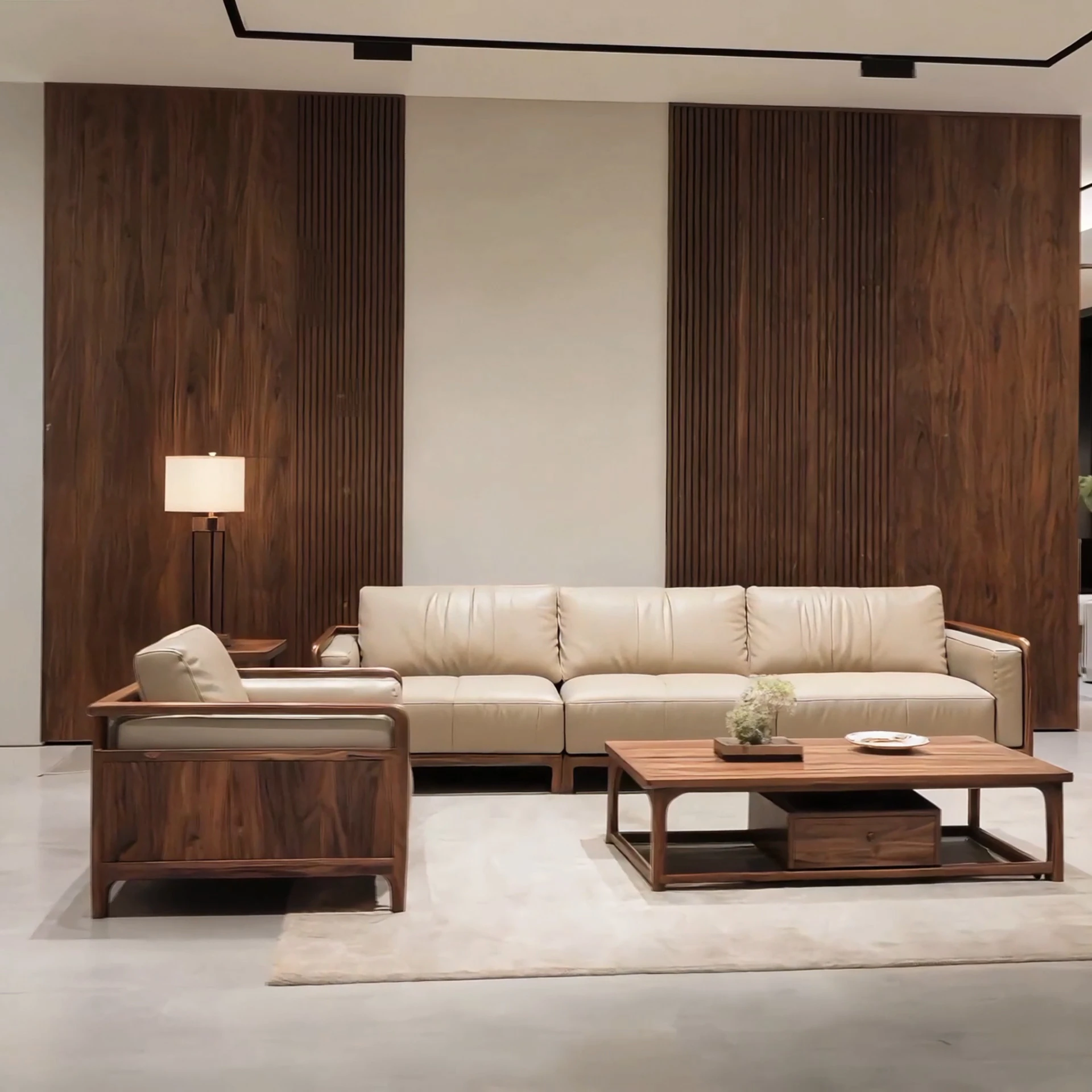 Elegant Song-style Aesthetic Furniture: High-end New Chinese Solid Wood Sofa Set for Living Room, Villa - Perfect for Spacious and Cozy Homes, Crafted from Premium Walnut Wood.