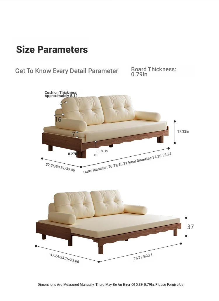 Thickened flannel 77/53.15 in * 76.77 in (high elastic sponge) +2 back packs +2 pillows all solid wood without skin