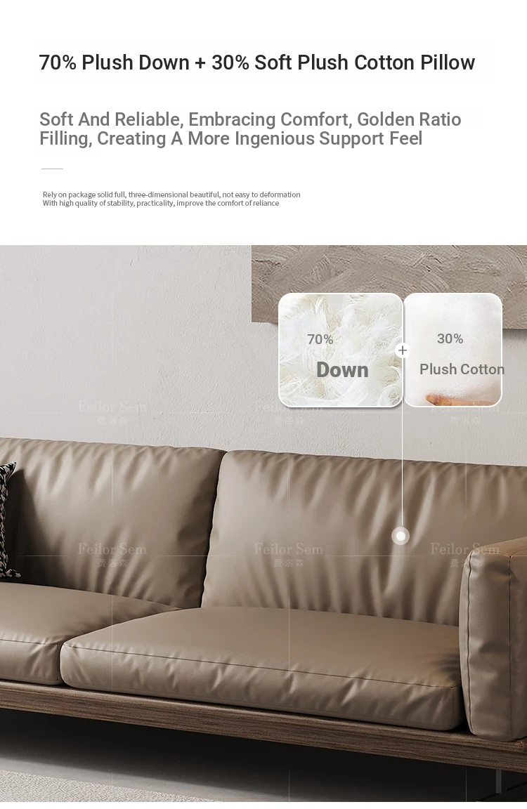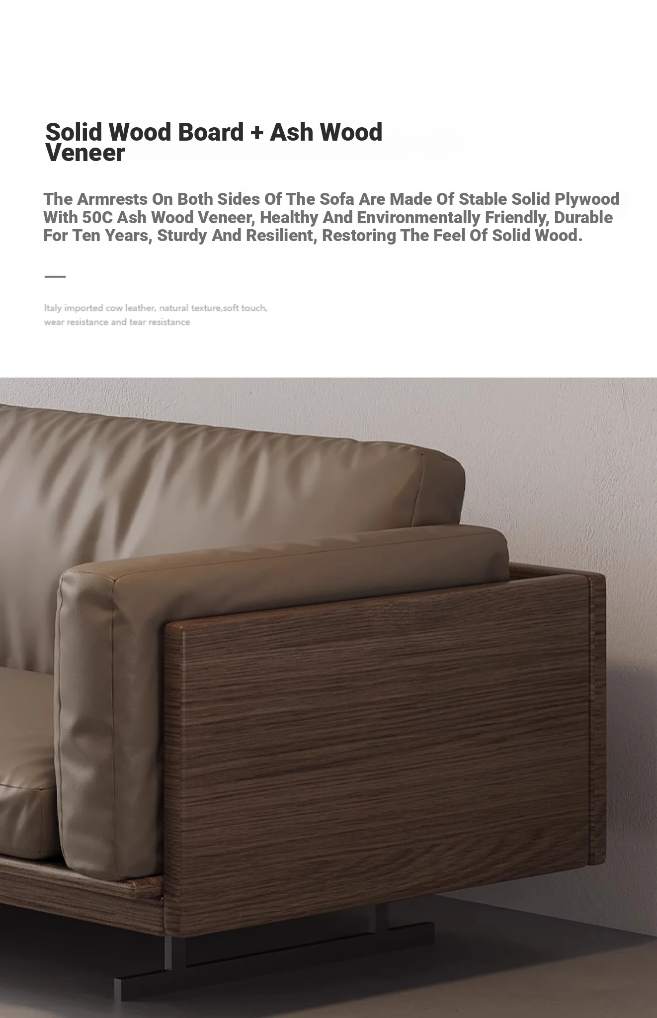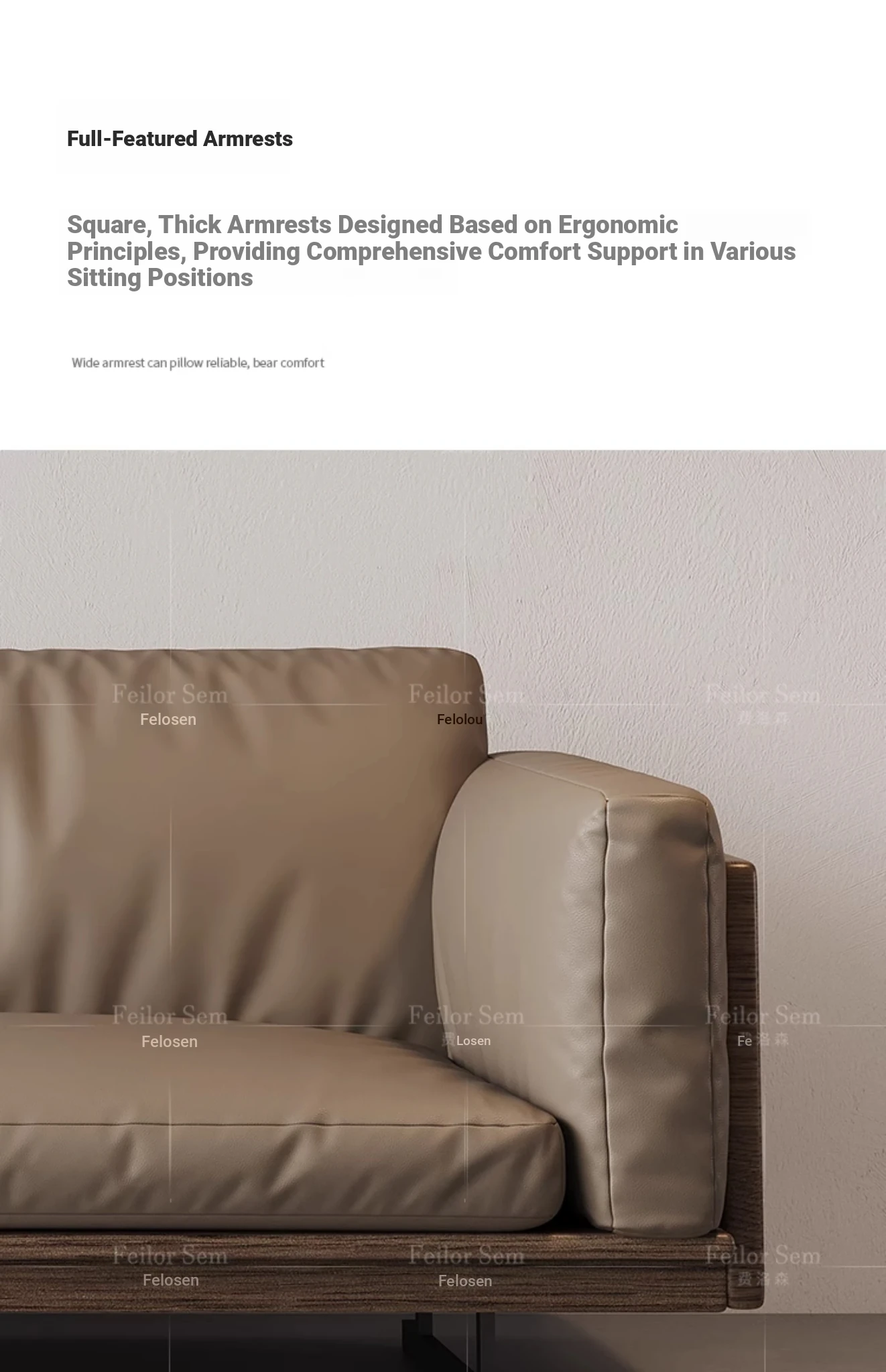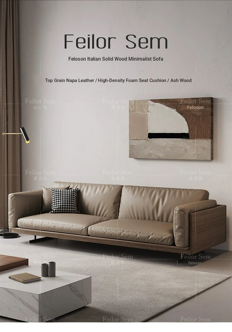 Feroson Italian Minimalist Genuine Leather Sofa - Modern Luxury with Top-Grain Cowhide and Solid Ash Wood Frame for Your Living Room - Sleek and Stylish Design