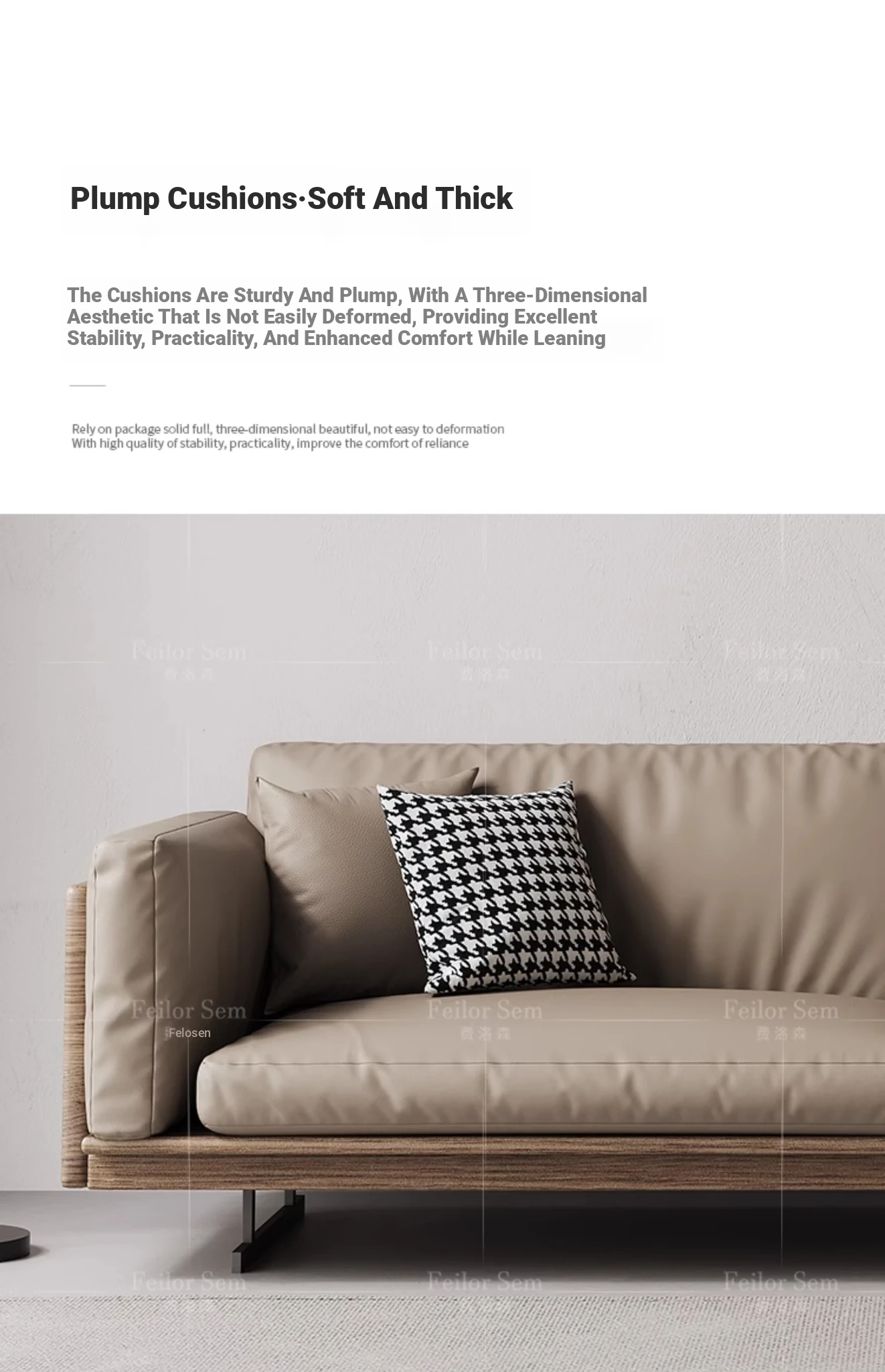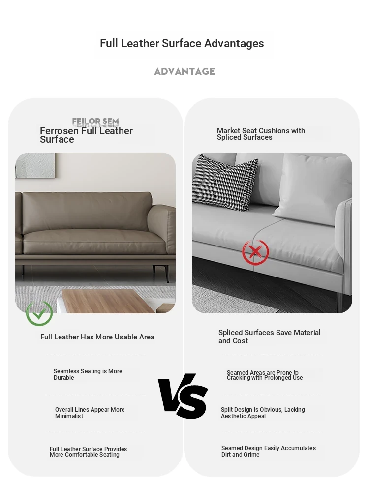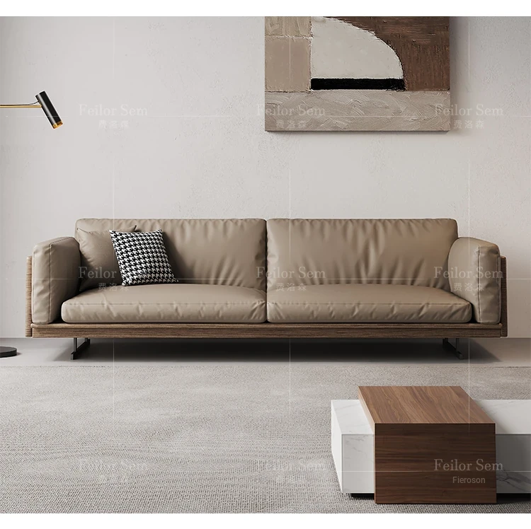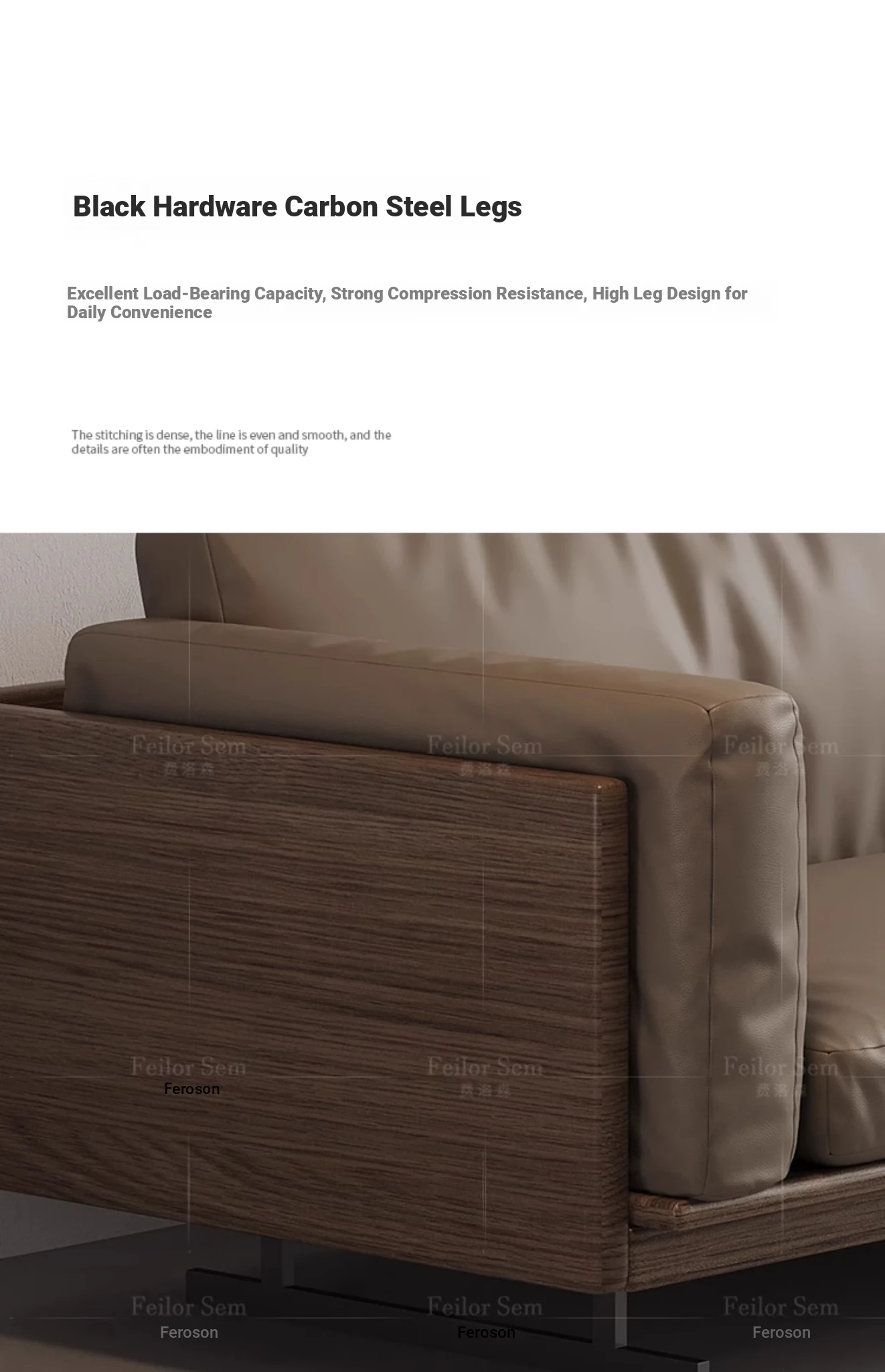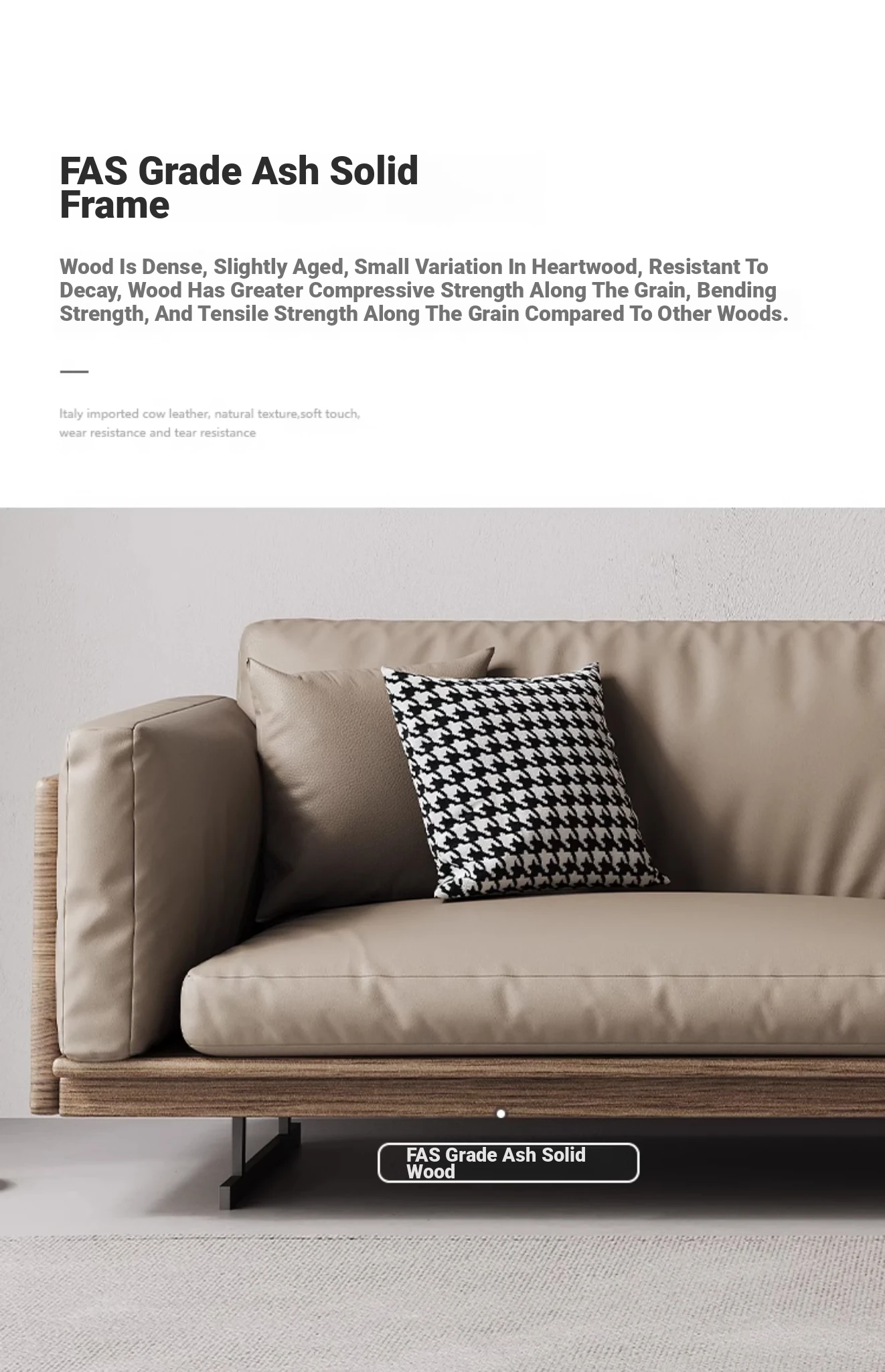 Feroson Italian Minimalist Genuine Leather Sofa - Modern Luxury with Top-Grain Cowhide and Solid Ash Wood Frame for Your Living Room - Sleek and Stylish Design