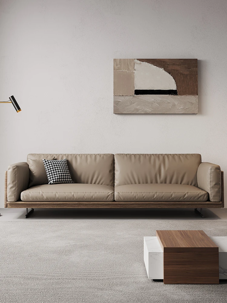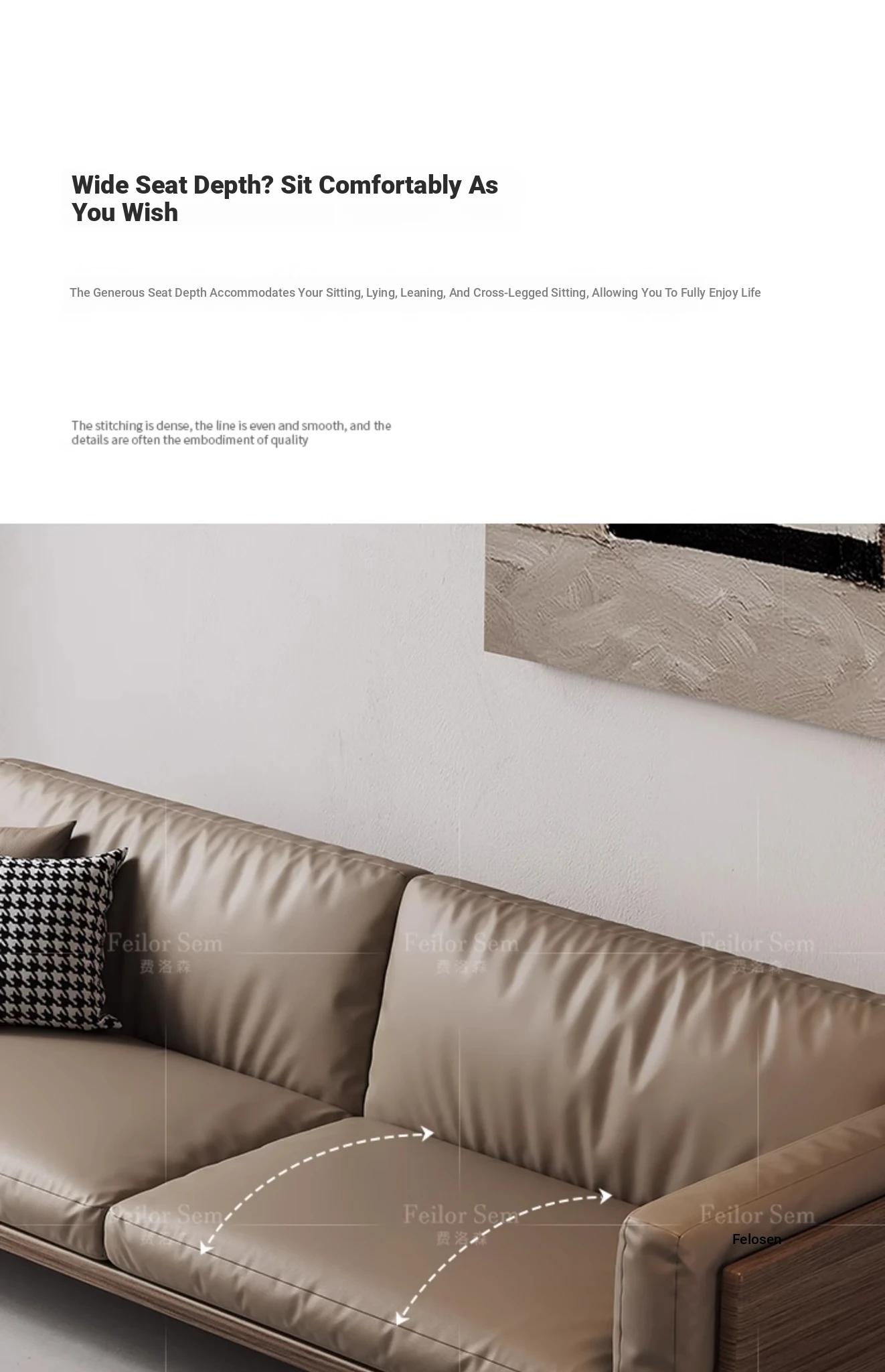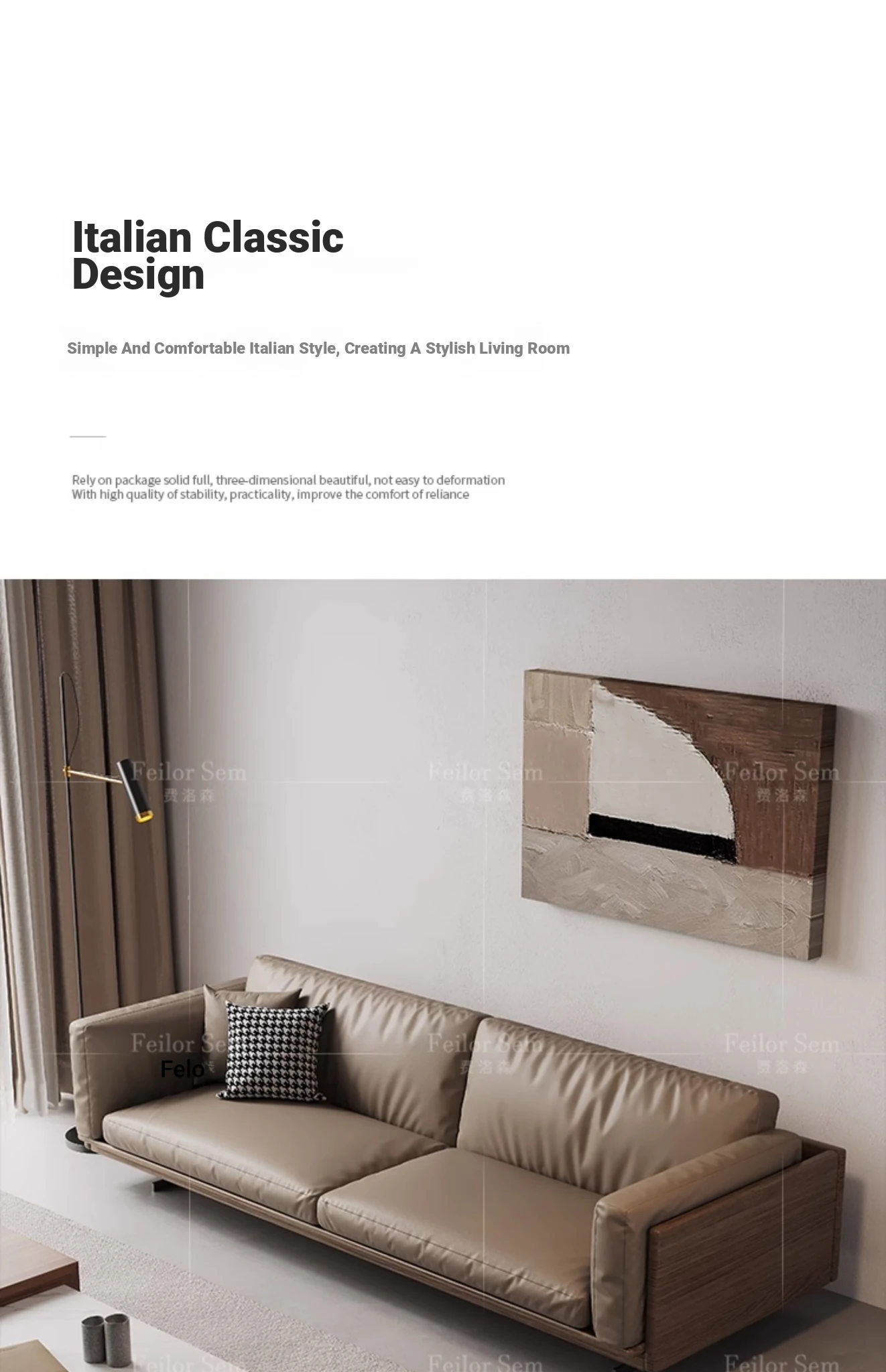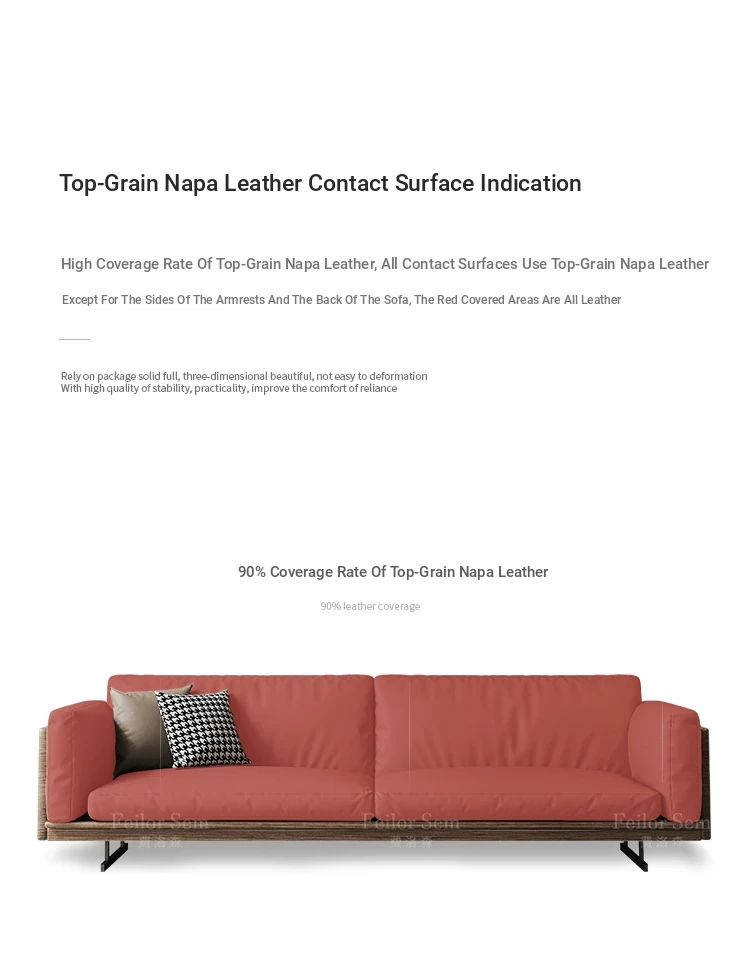 Feroson Italian Minimalist Genuine Leather Sofa - Modern Luxury with Top-Grain Cowhide and Solid Ash Wood Frame for Your Living Room - Sleek and Stylish Design