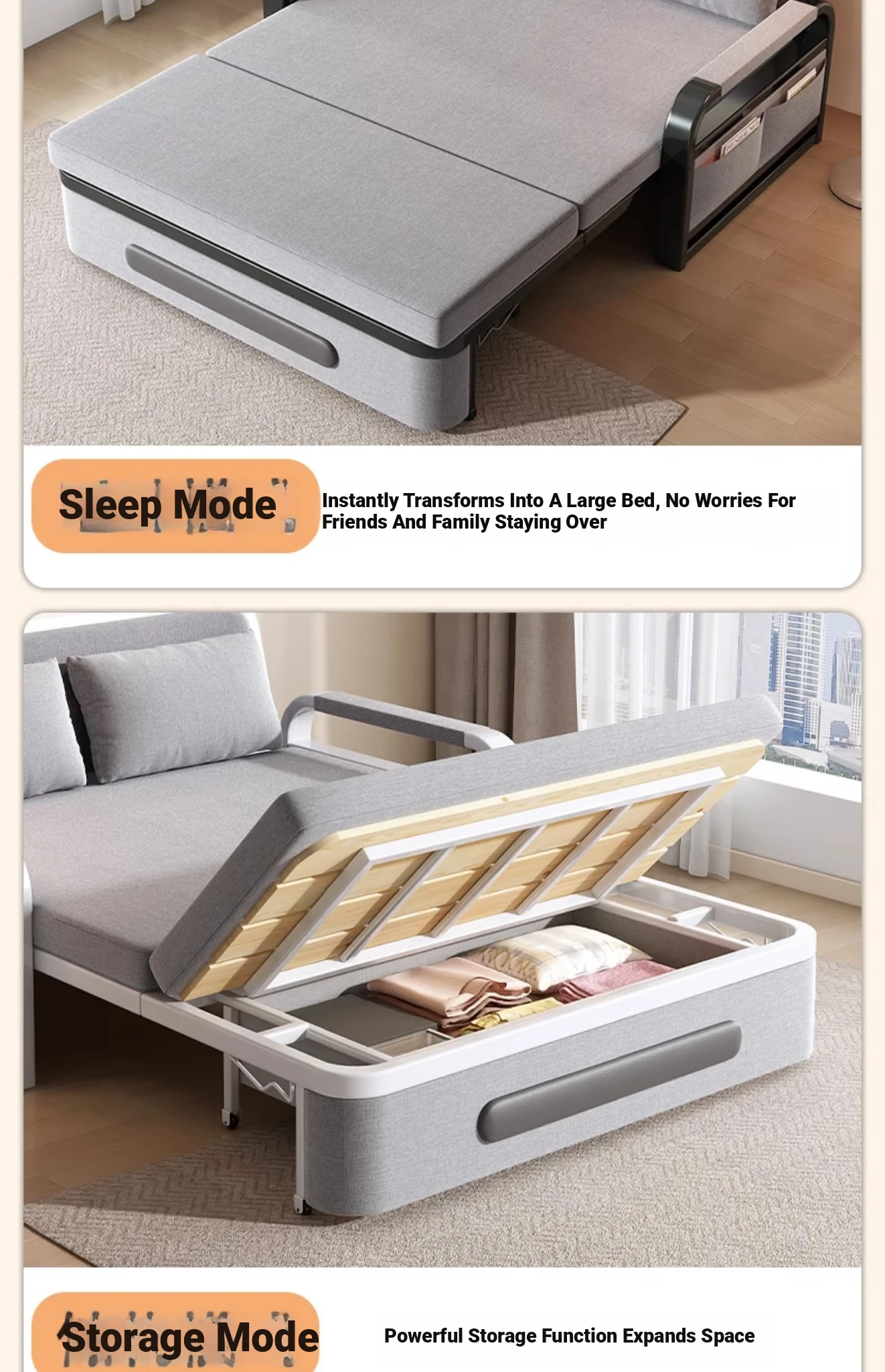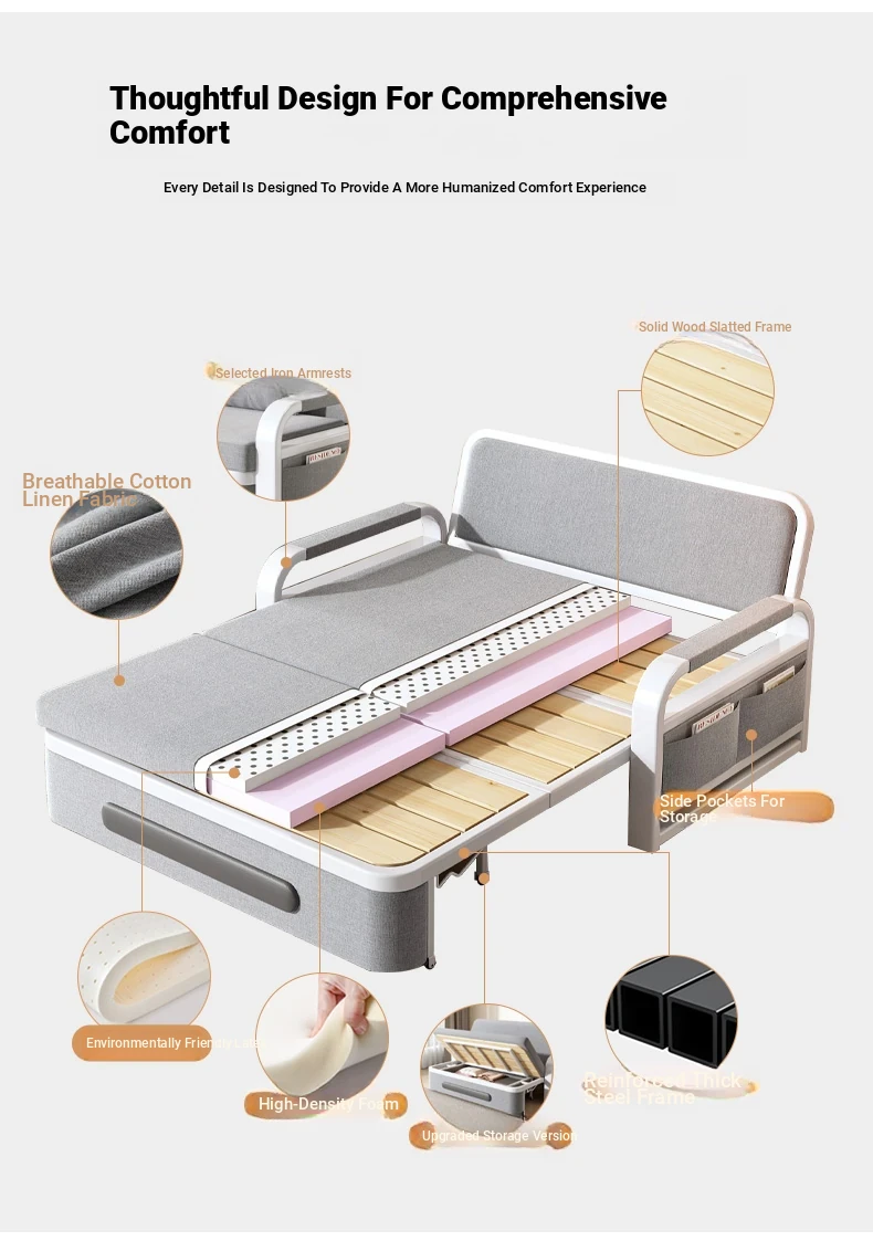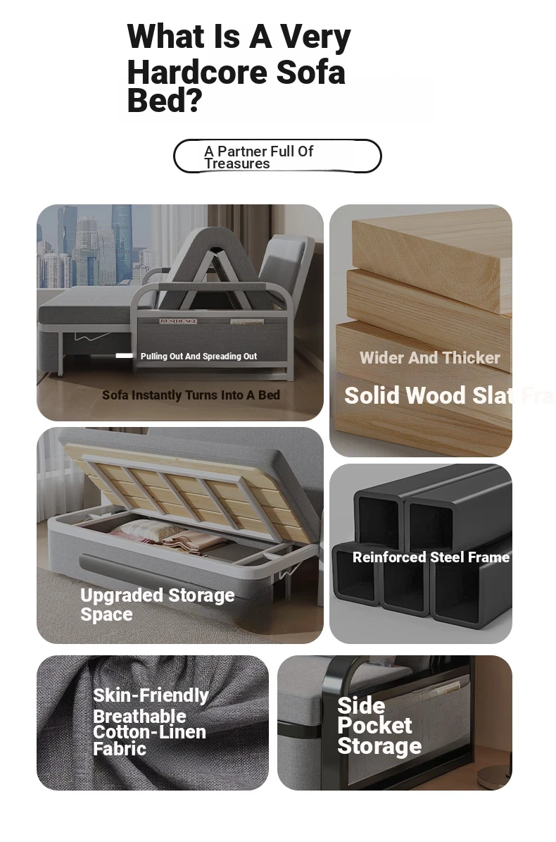 [Free Shipping to Hong Kong] 2024 New Foldable Sofa Bed - Multi-functional Expandable Bed for Small Spaces and Balconies, Made of Solid Wood