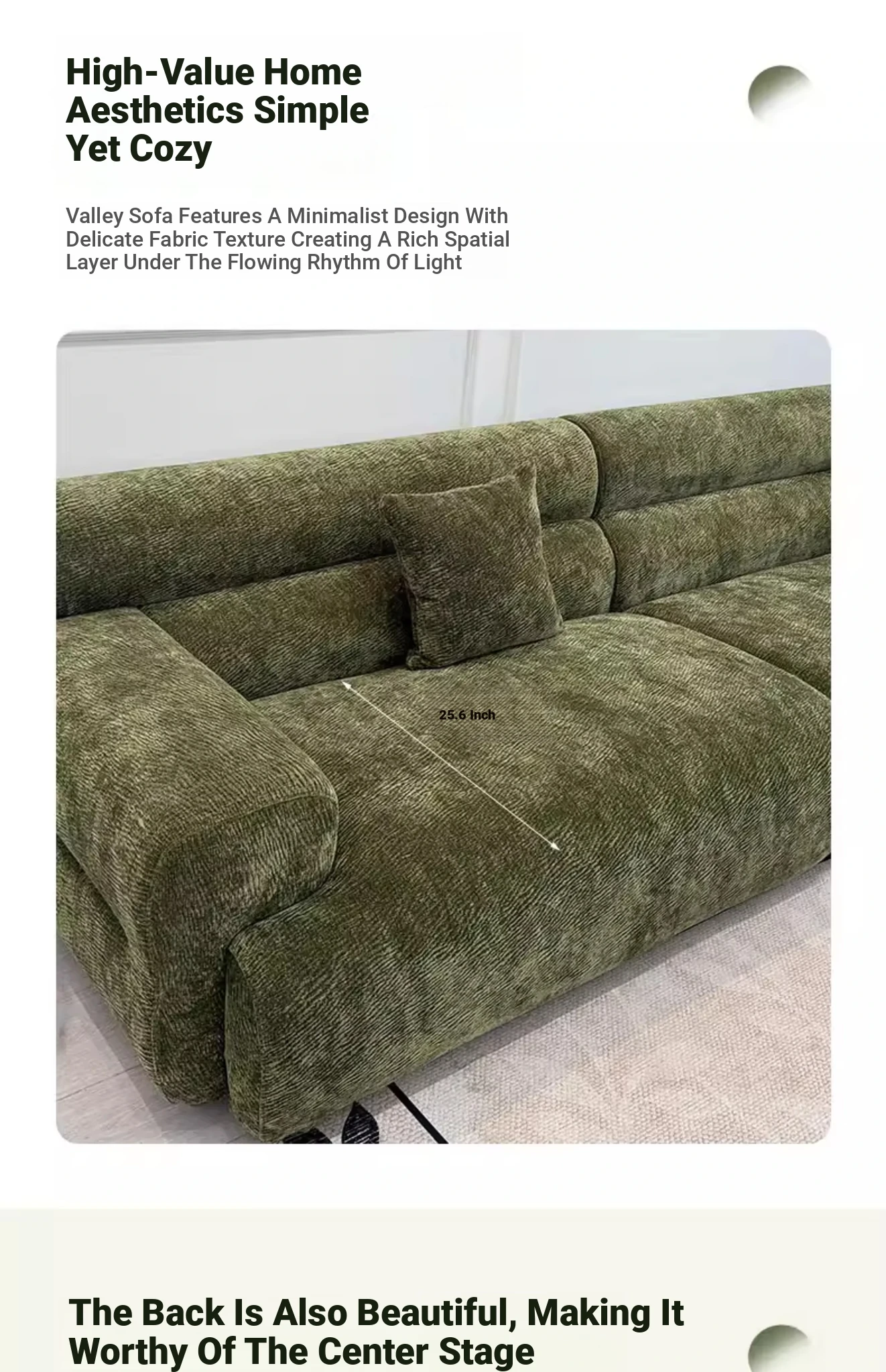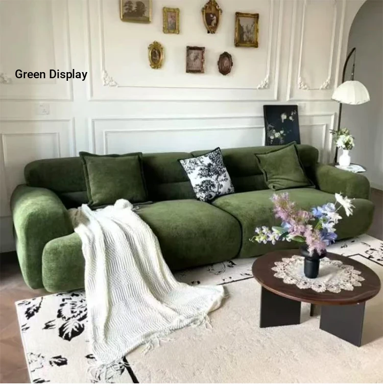 French Cream Valley Chenille Sofa - Stylish Green Design for Living Rooms of All Sizes, Perfect for Modern Homes