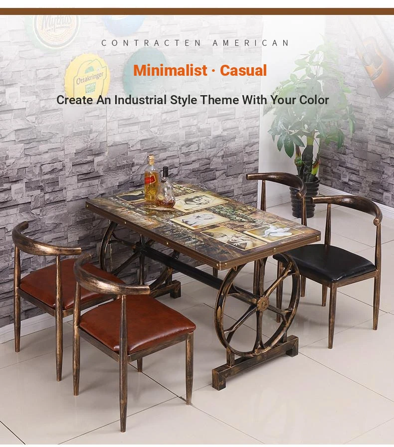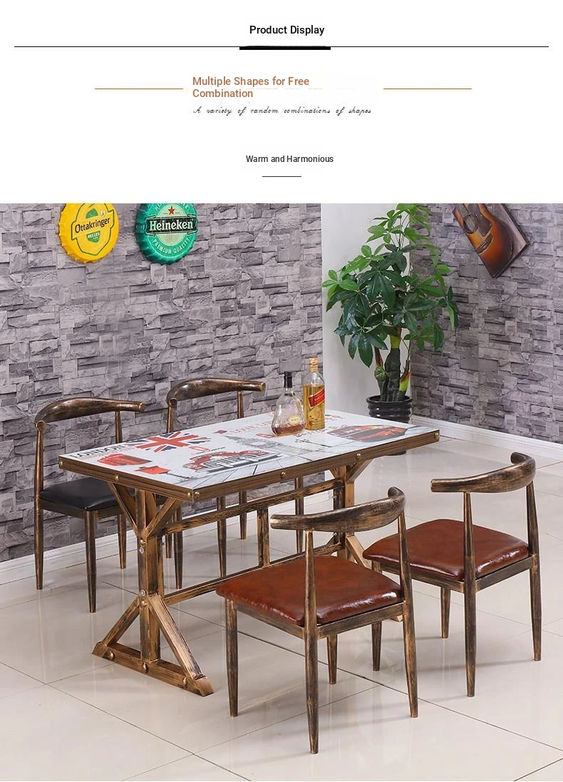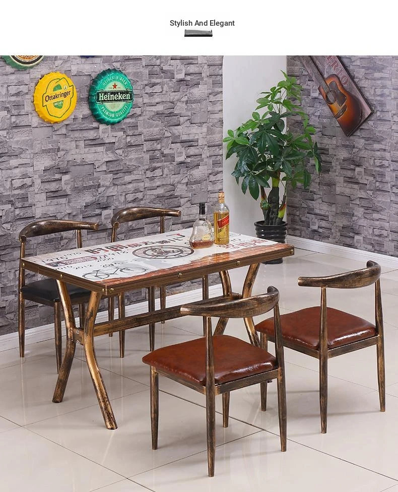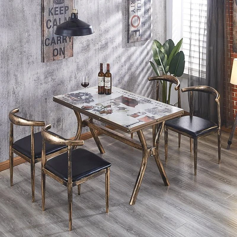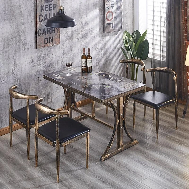 Industrial-Style Breakfast Diner Table and Chair Set for Fast Food, Burgers, and Milk Tea Shops - Perfect for Restaurants and BBQ Businesses