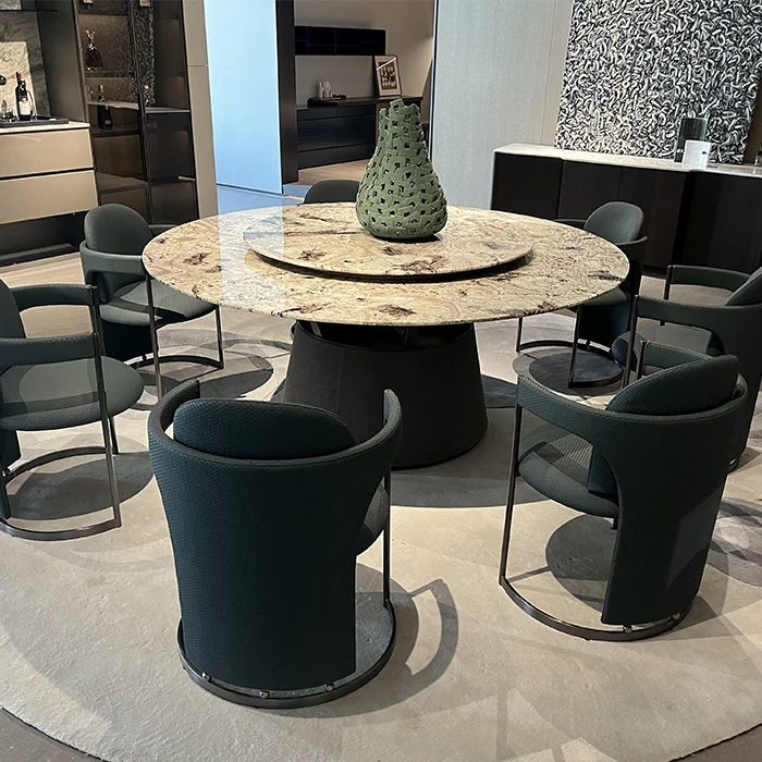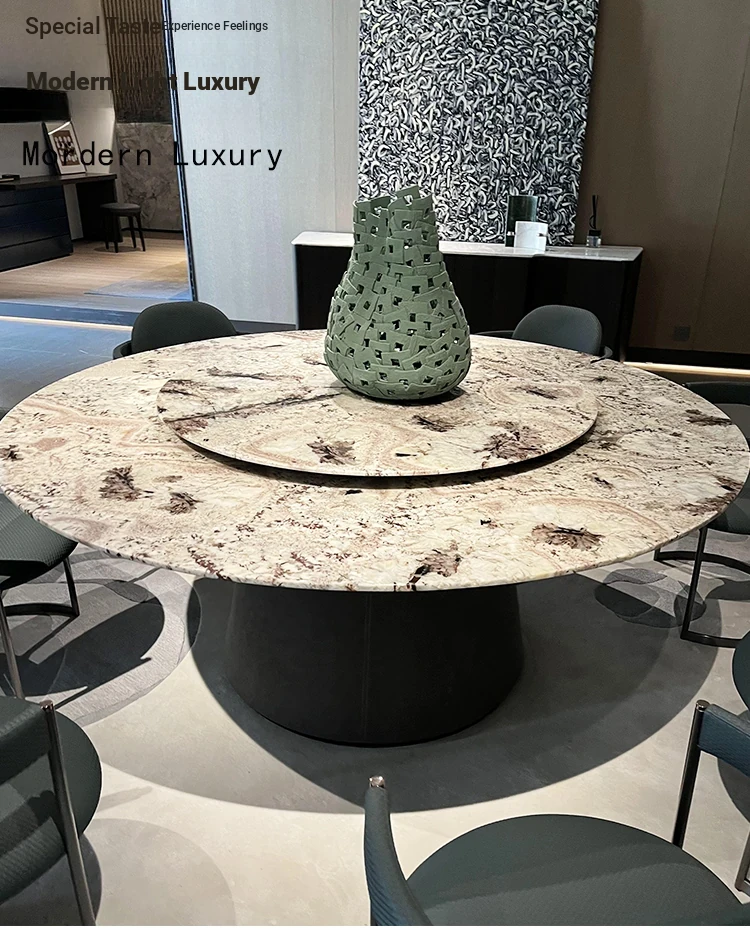 Italian Luxury Ultra-Crystal Stone Villa Round Dining Table - Modern Minimalist High-End Marble Dining Set for Elegant Home Décor