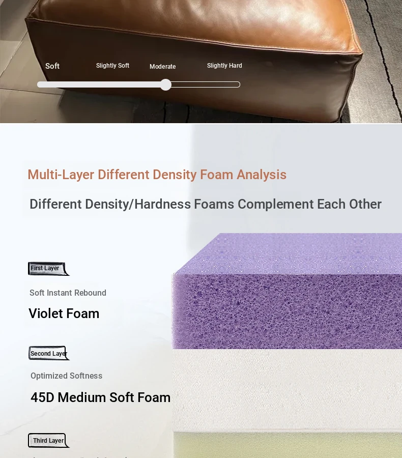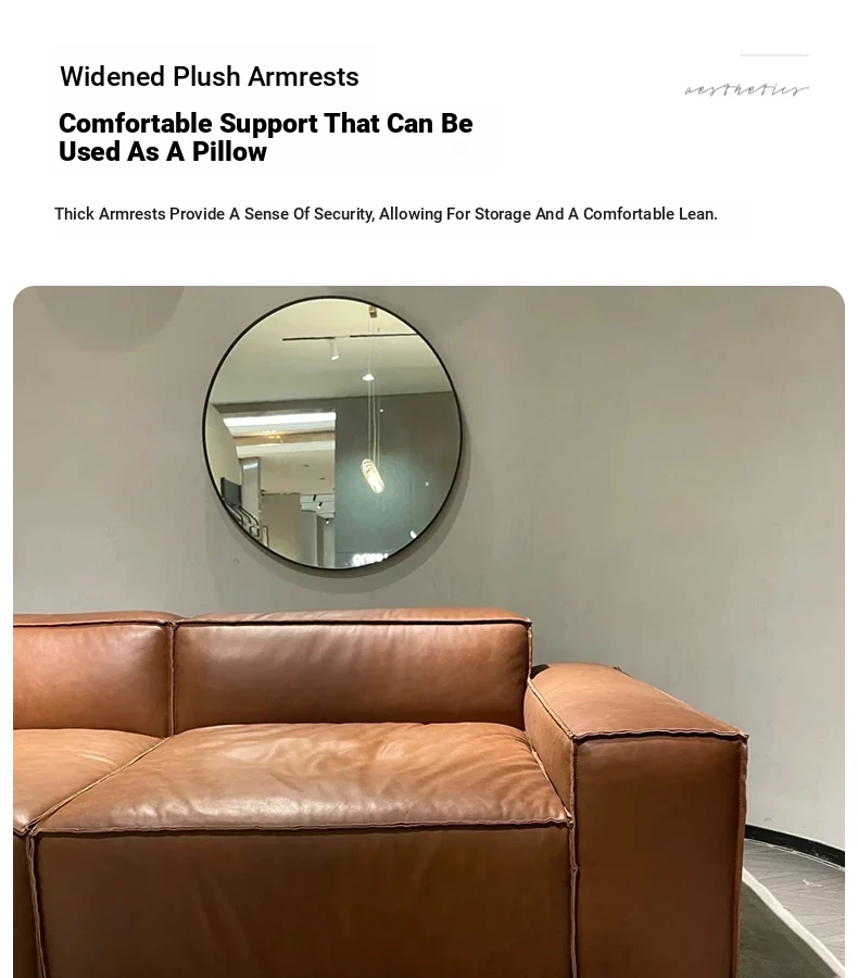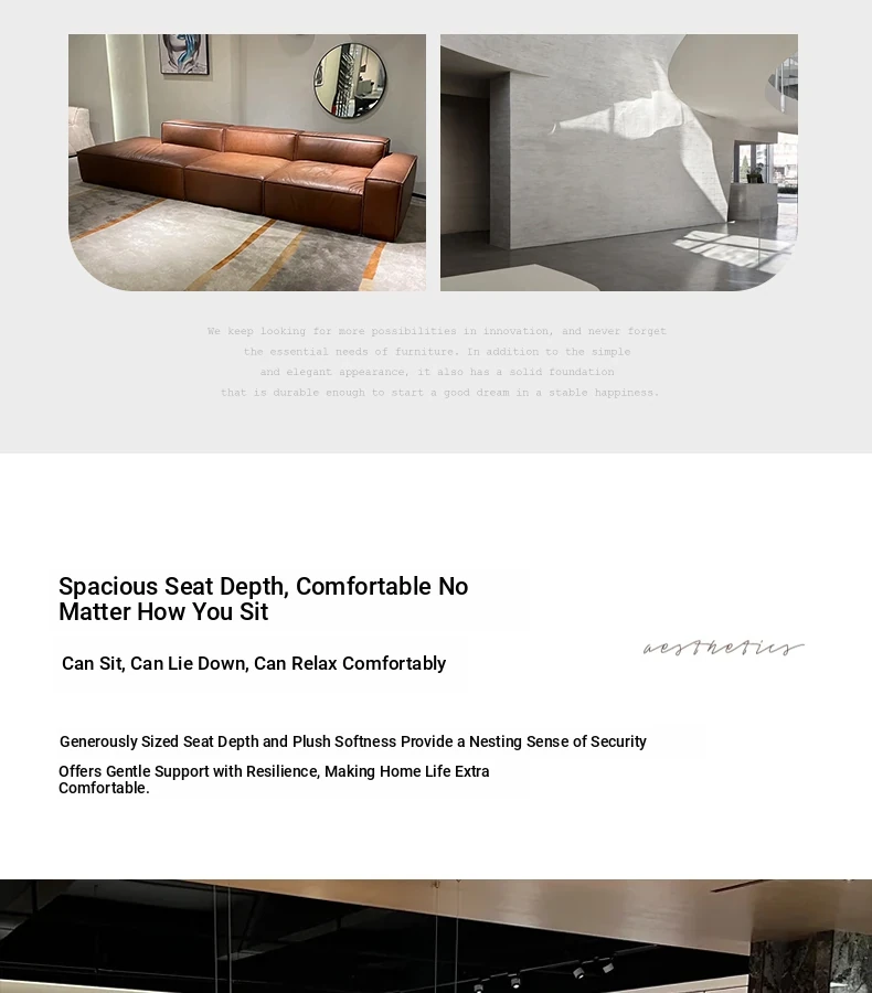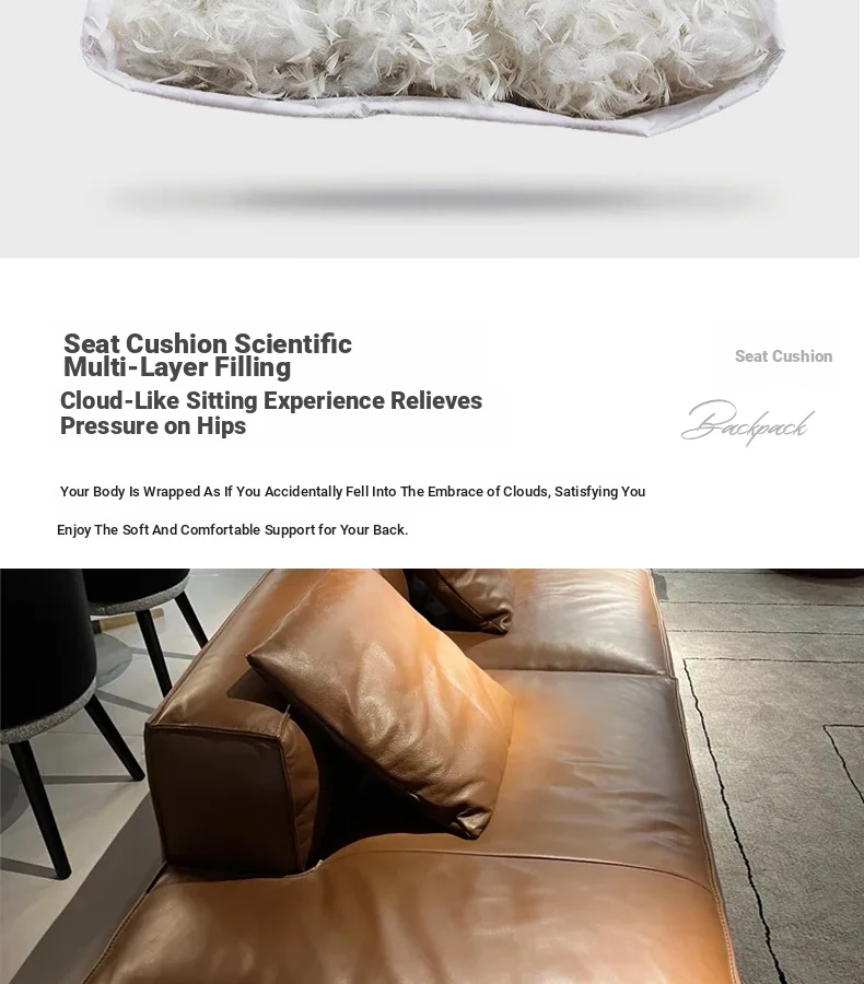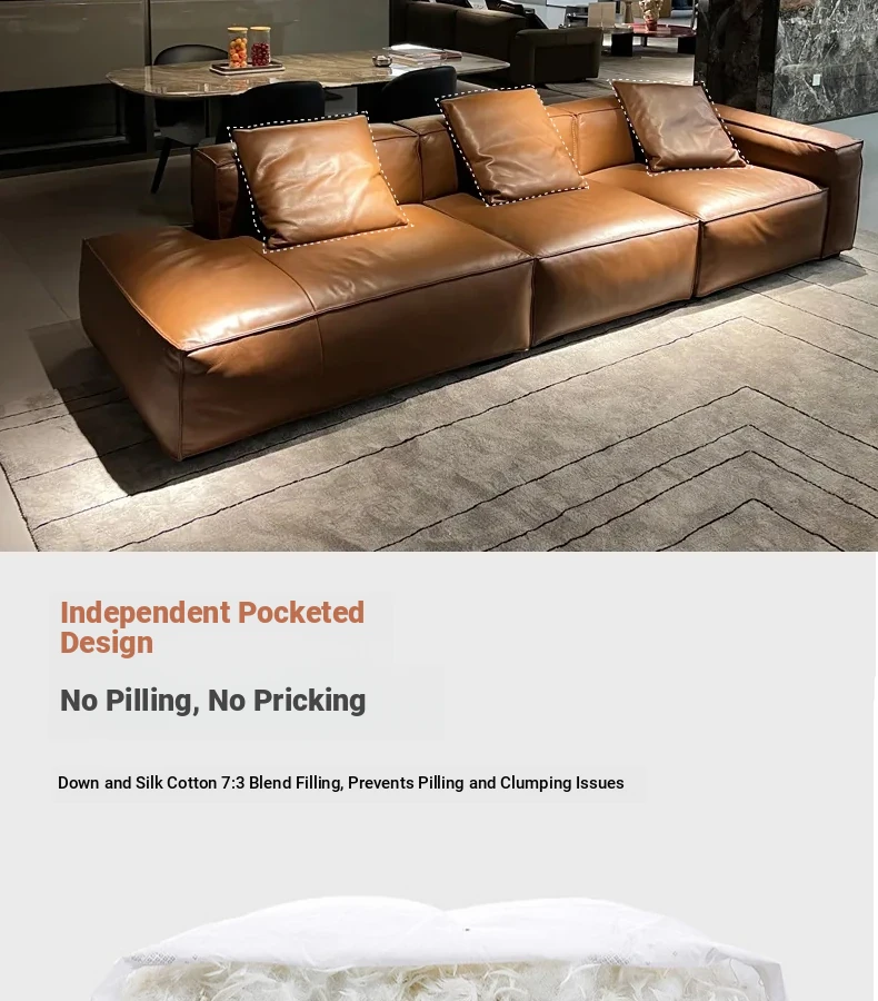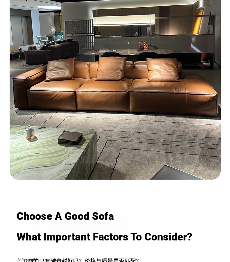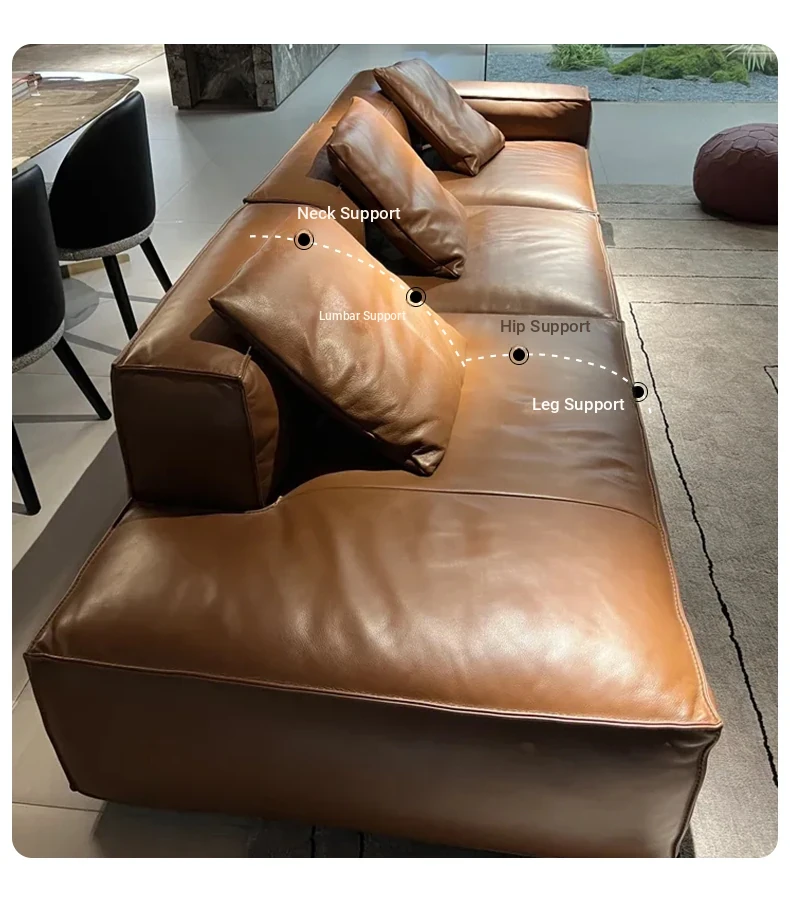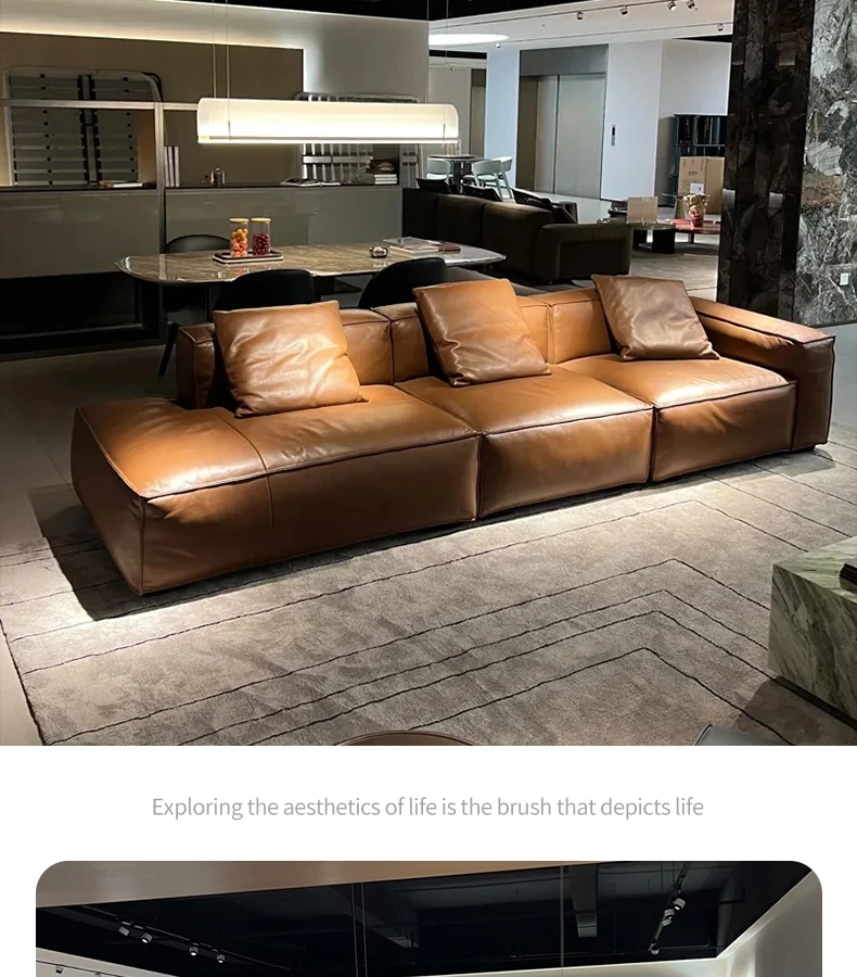 Italian Minimalist Genuine Leather Sofa - Premium Top Grain Leather, Modern Simple Design, Space-Saving 3-Seater and 4-Seater Straight Sofa for Small Apartments