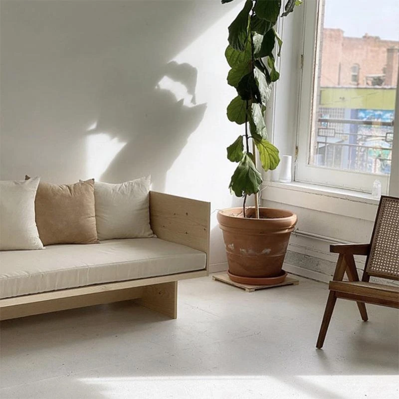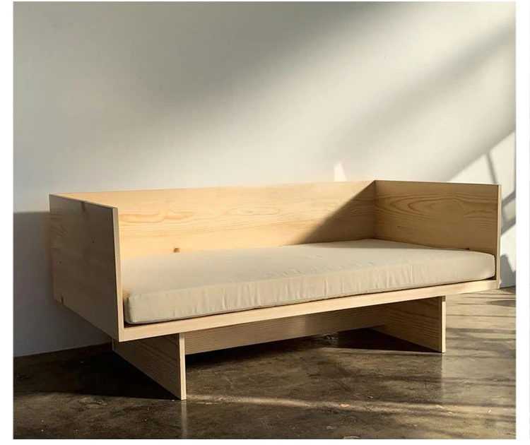 Japanese Solid Wood Sofa - Minimalist Modern Living Room Furniture for Hotels, Cozy Fabric Lounge Chair for Small Apartments and Guesthouses, Perfect for Relaxation in Any Space
