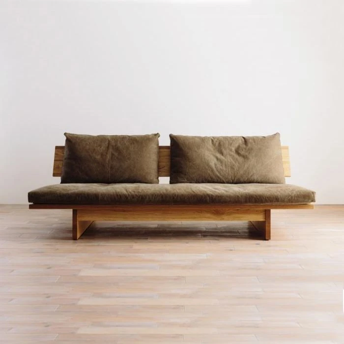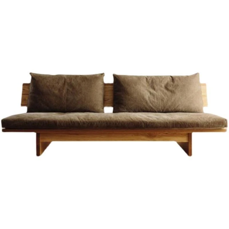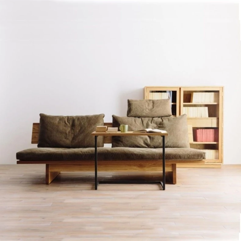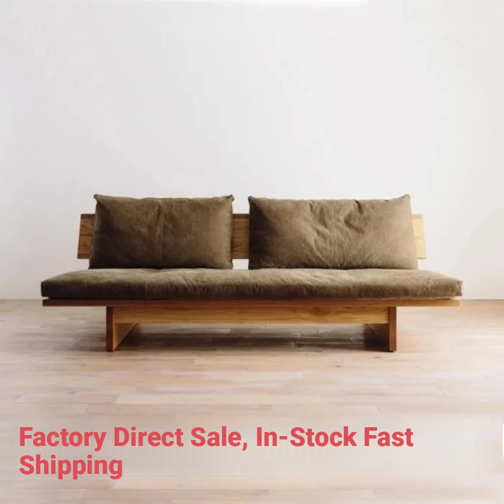 Japanese Wabi-Sabi Style Compact Living Room Sofa Set - Natural Wood Finish, Solid Wood, Minimalist Fabric Furniture for Cozy Homes and Guesthouses