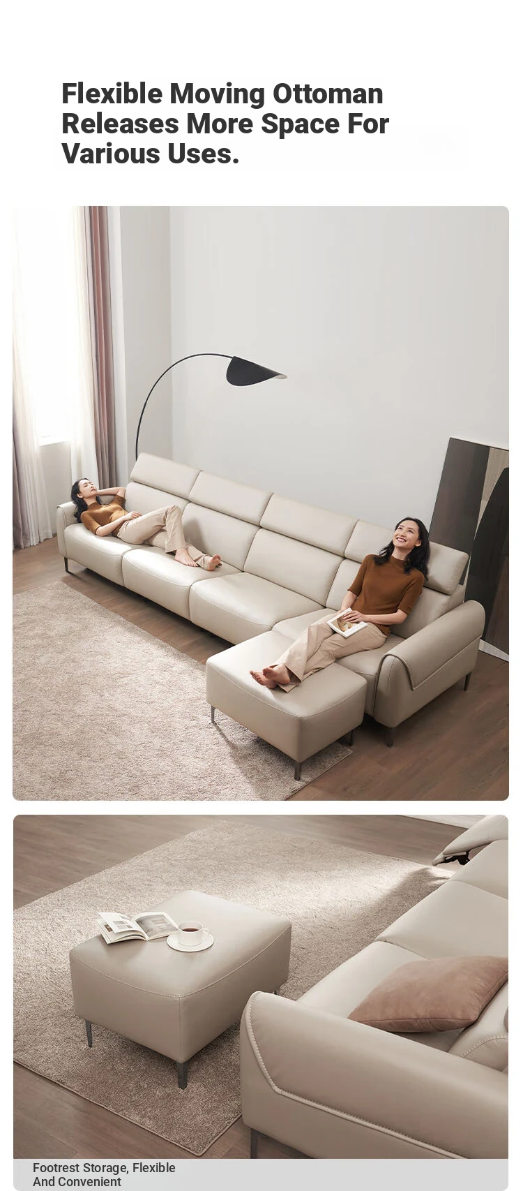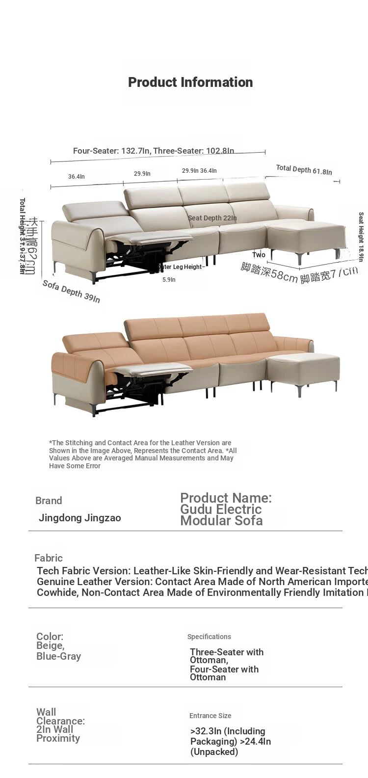 JD.com Customizable Electric Fabric Sofa with Adjustable Headrest - Skin-Friendly, Durable Tech Fabric for Spacious Living Rooms - Beige Color