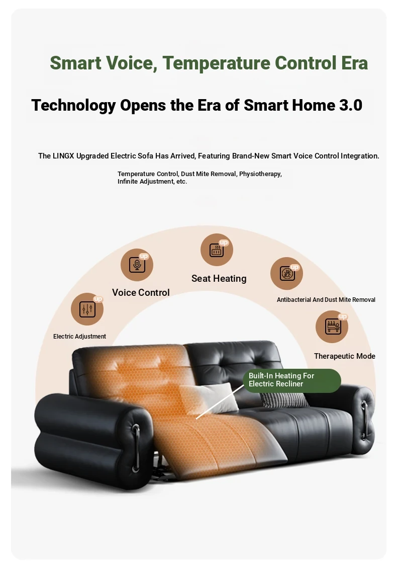 Thickened top layer cowhide 137.80 ins multi-person position (double Motor/with mite removal heating function)