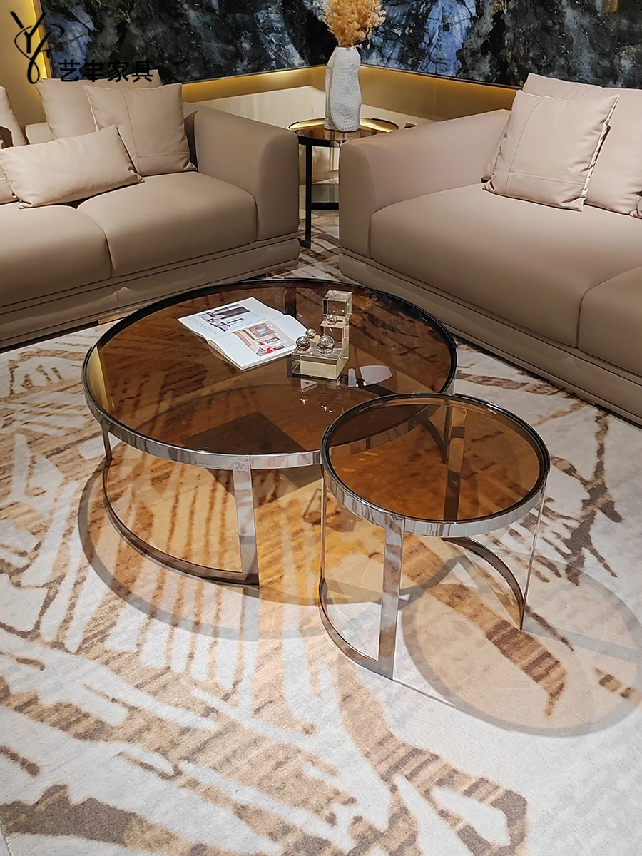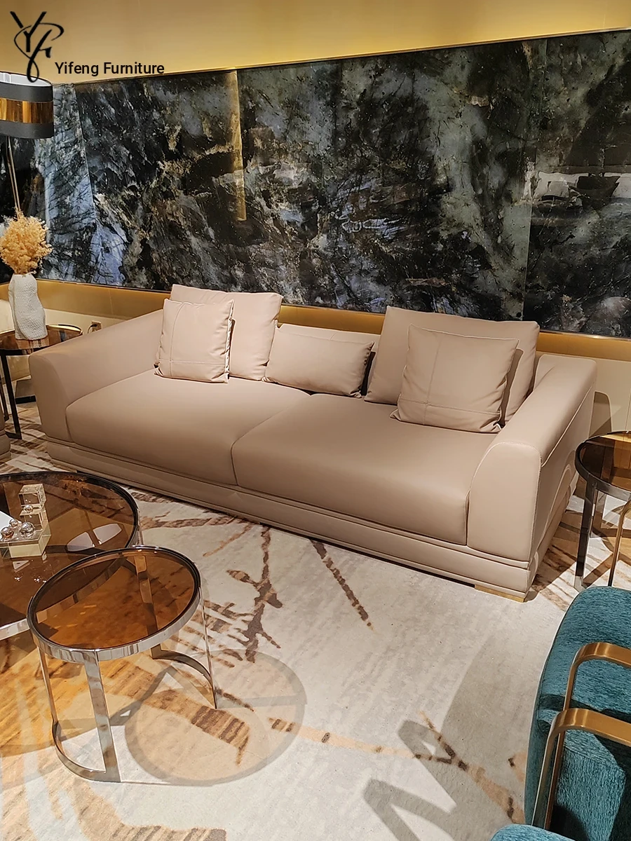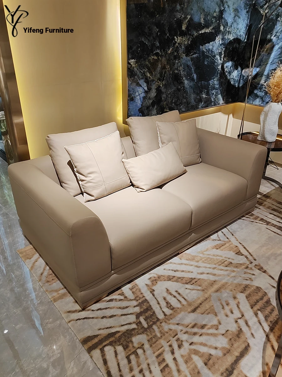 Luxury Italian Top-Grain Leather Sofa Set - Modern Chic Living Room Furniture for Villas and Spacious Apartments