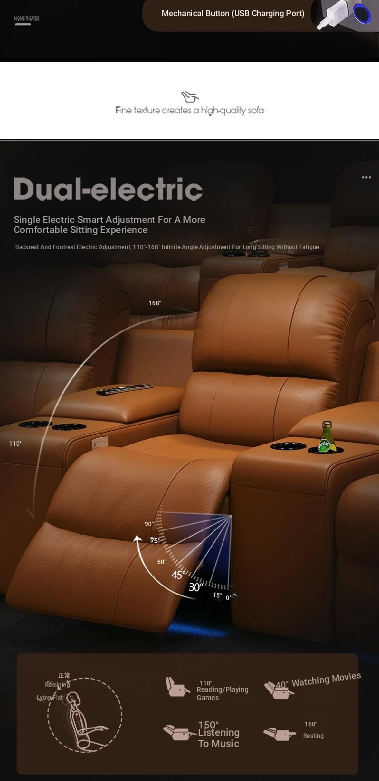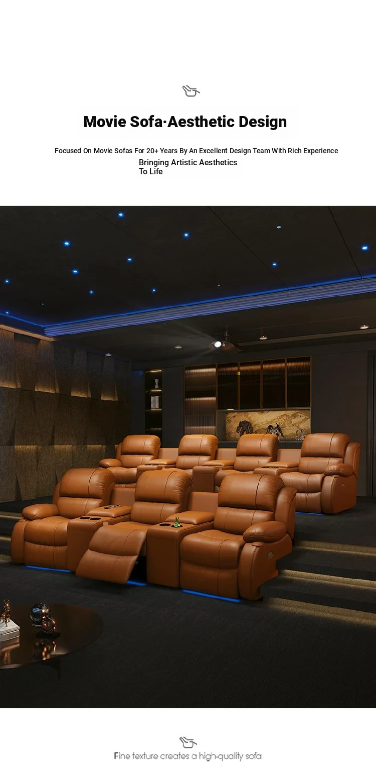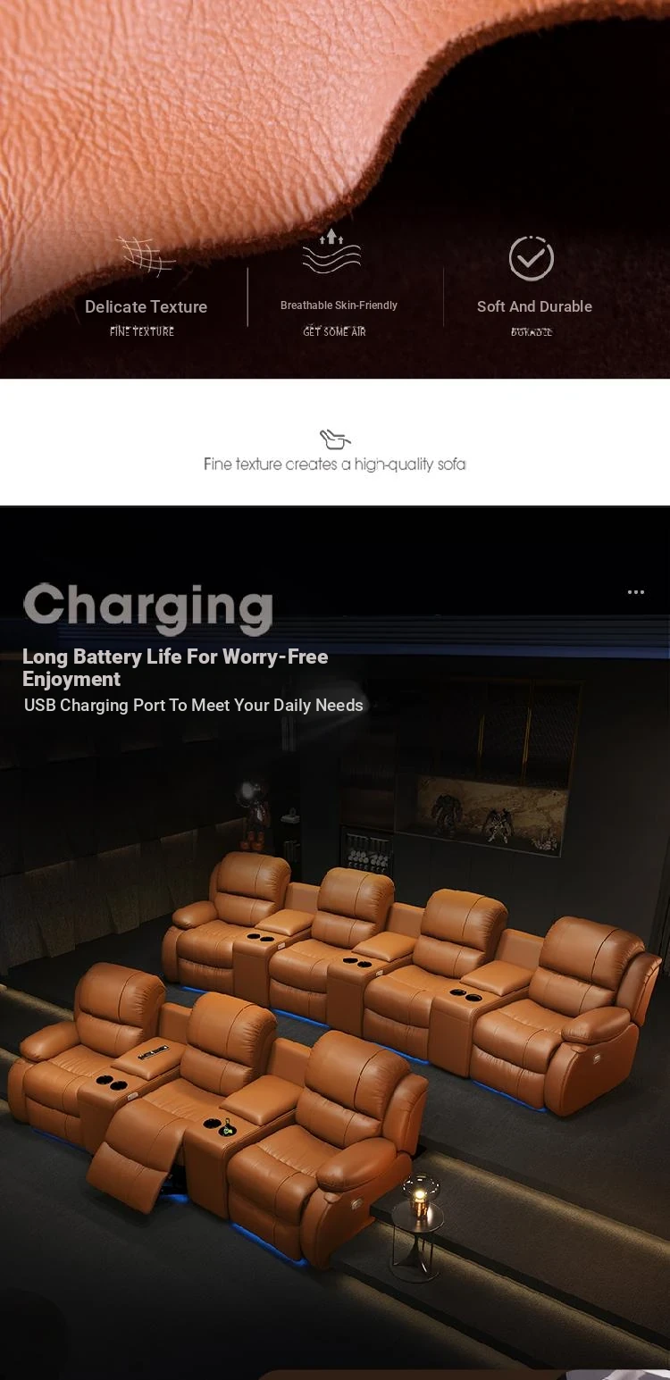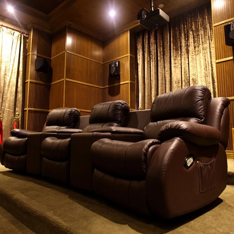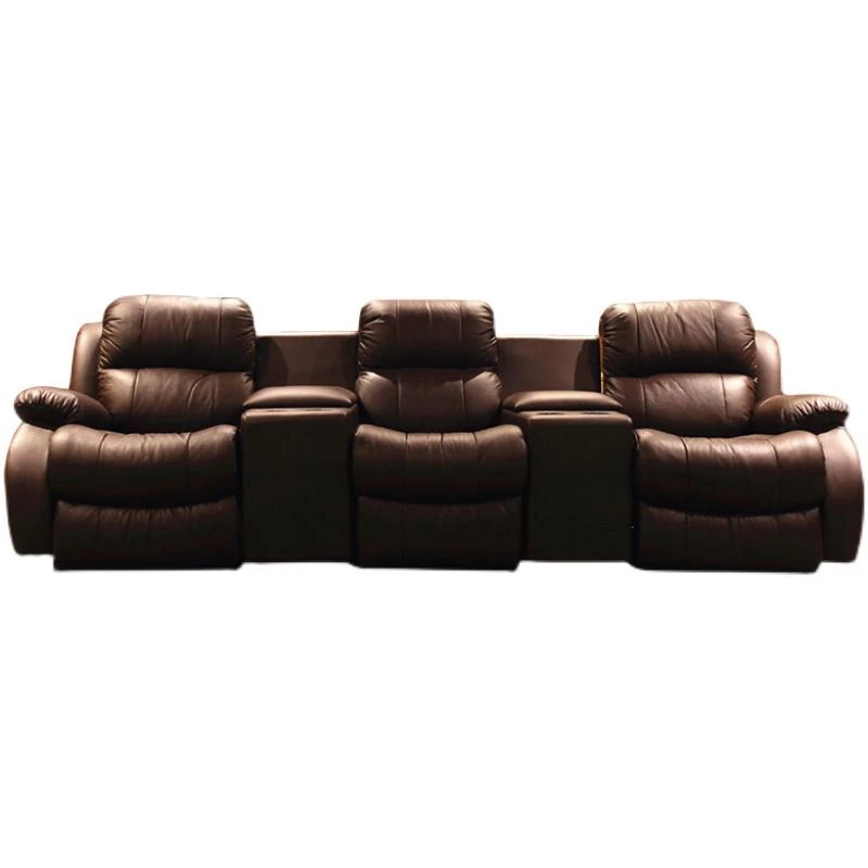 Luxury Leather Sofa for Home Theater - Electric Reclining Three-Seat Combination for Villas and Media Rooms, Perfect for Cinematic Experiences at Home