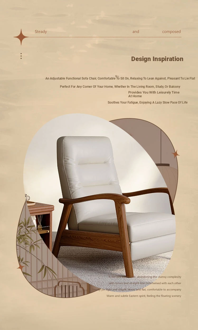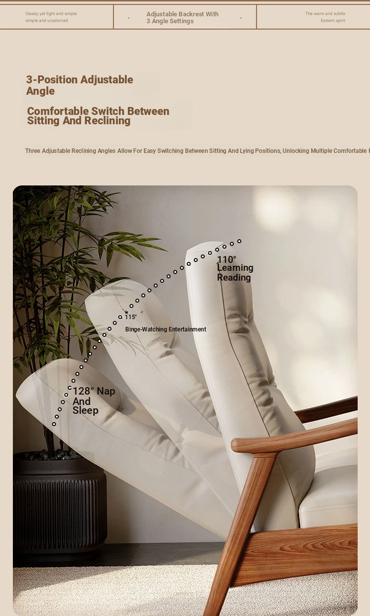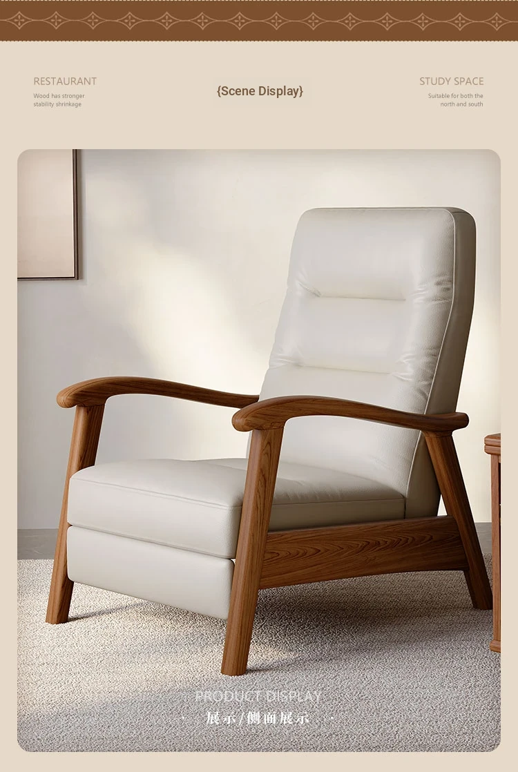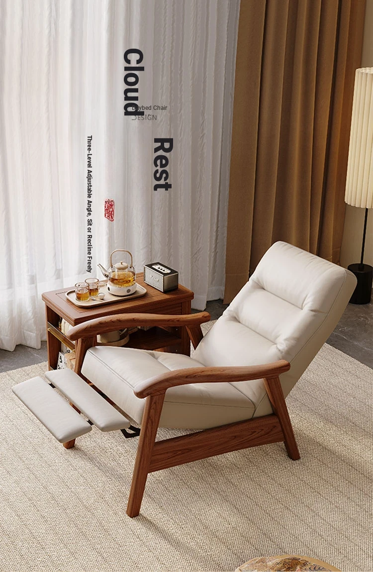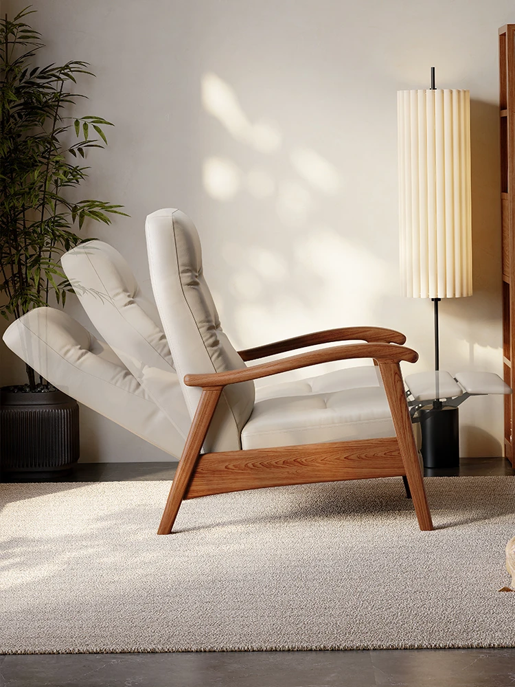 Modern Chinese Solid Wood Folding Sofa Chair - Multi-Functional Recliner for Living Room, Perfect for Relaxing, Napping, and Adjustable for Balcony Comfort