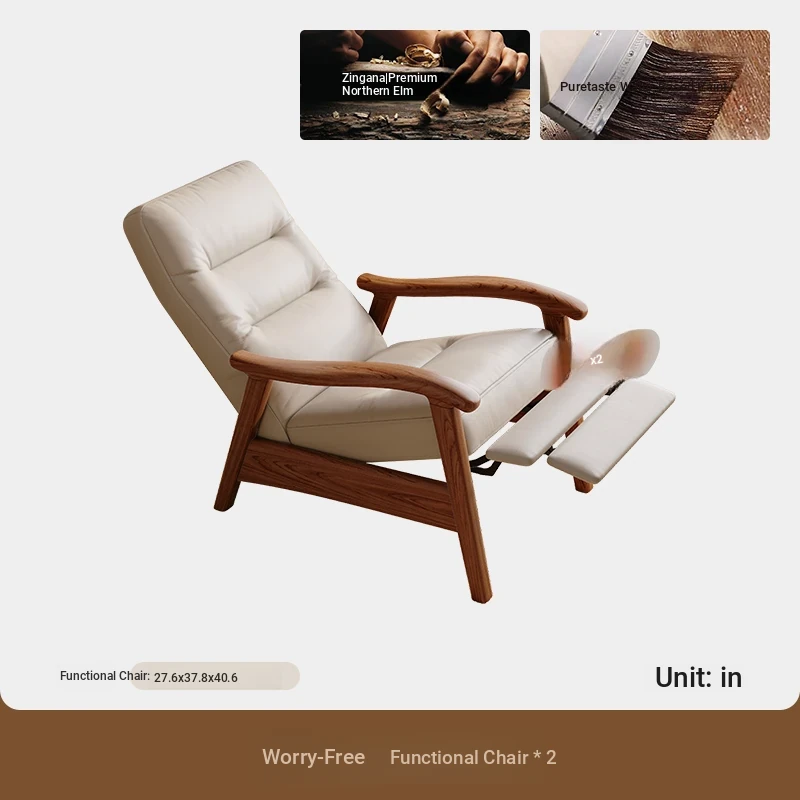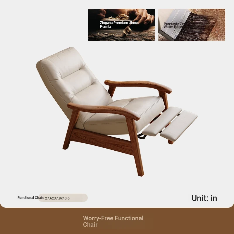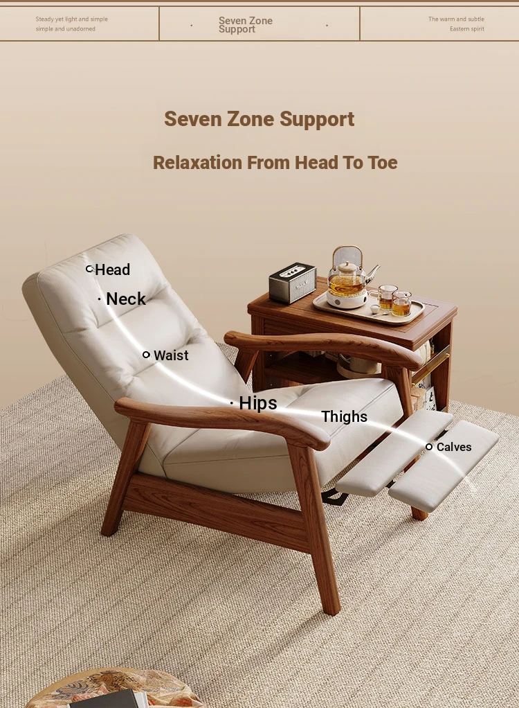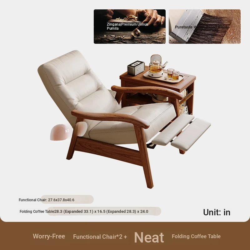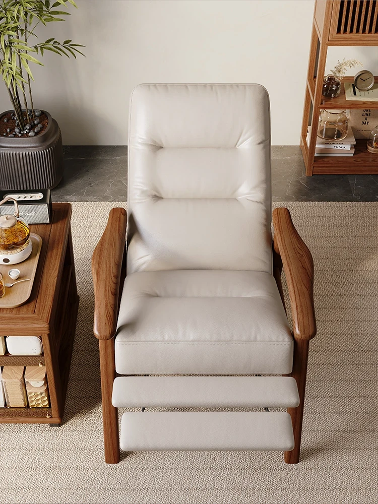 Modern Chinese Solid Wood Folding Sofa Chair - Multi-Functional Recliner for Living Room, Perfect for Relaxing, Napping, and Adjustable for Balcony Comfort