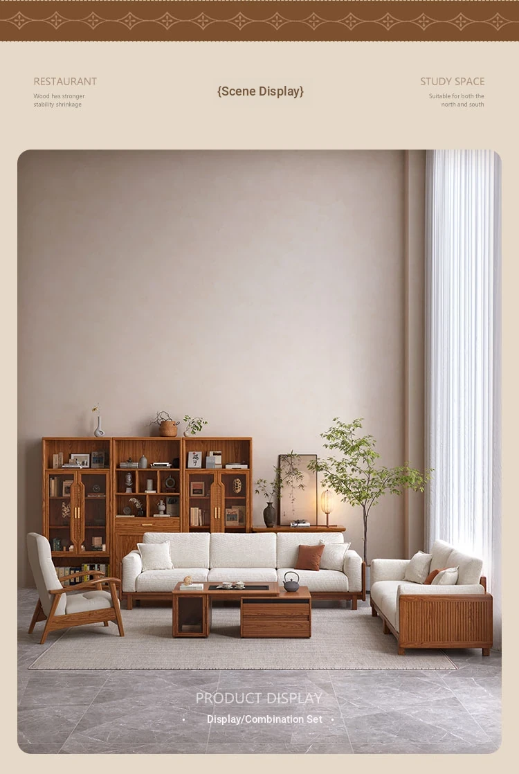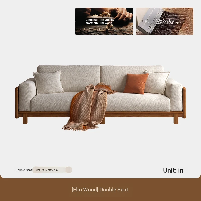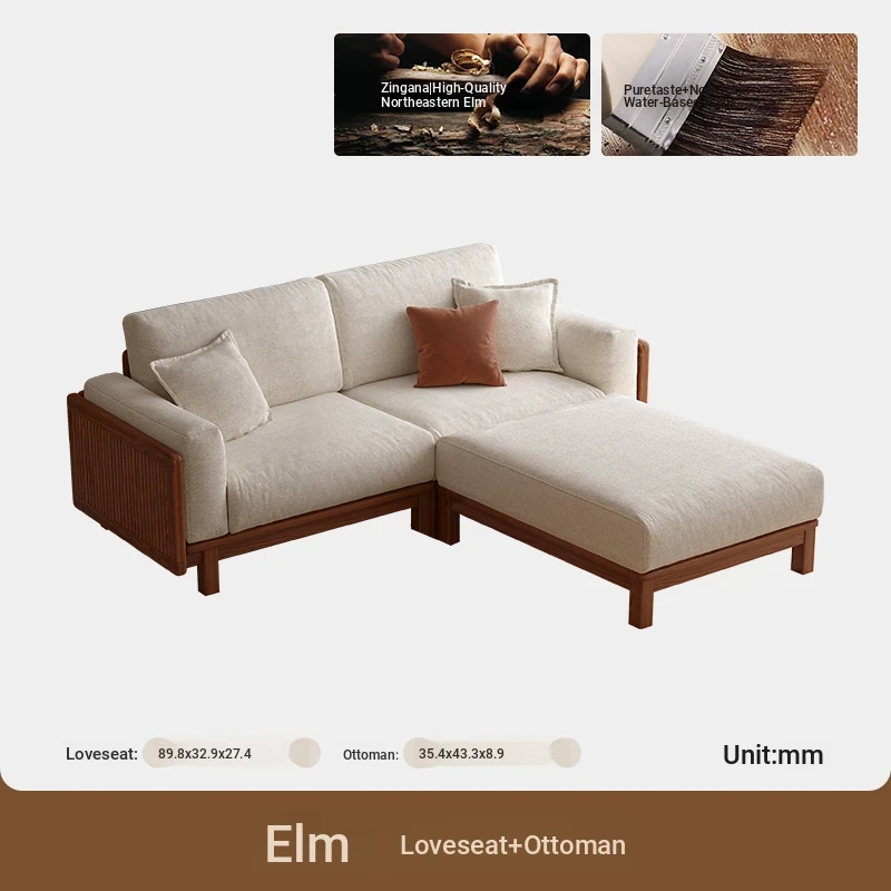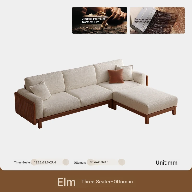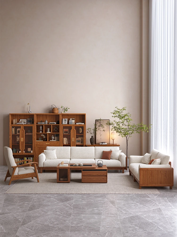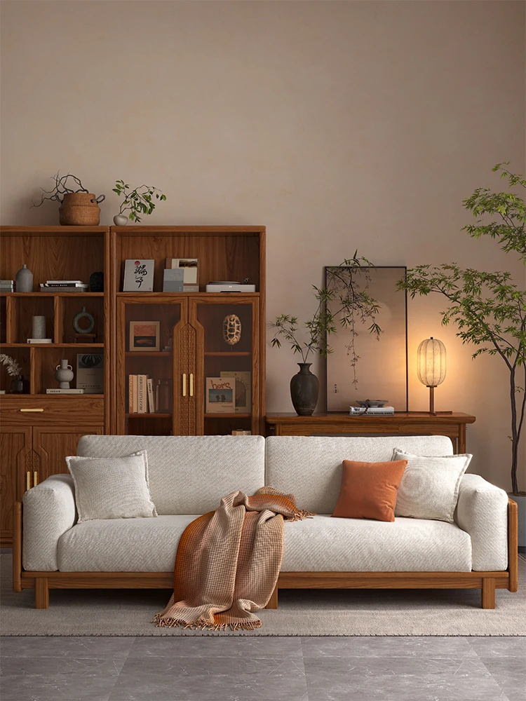 Modern Chinese Style Solid Wood Sofa Set: Versatile Elm Fabric Sofa for All Seasons, Complete with Coffee Table and TV Cabinet - Perfect for Your Living Room!