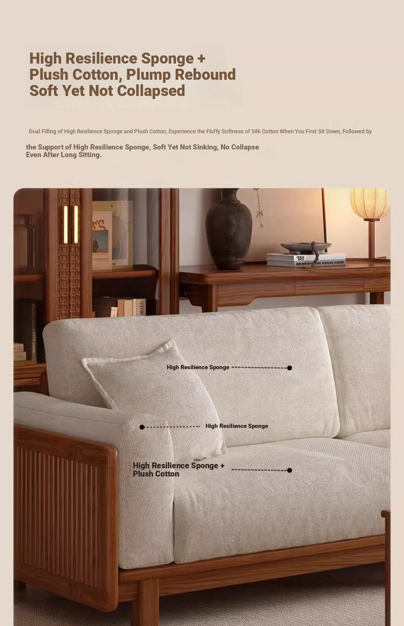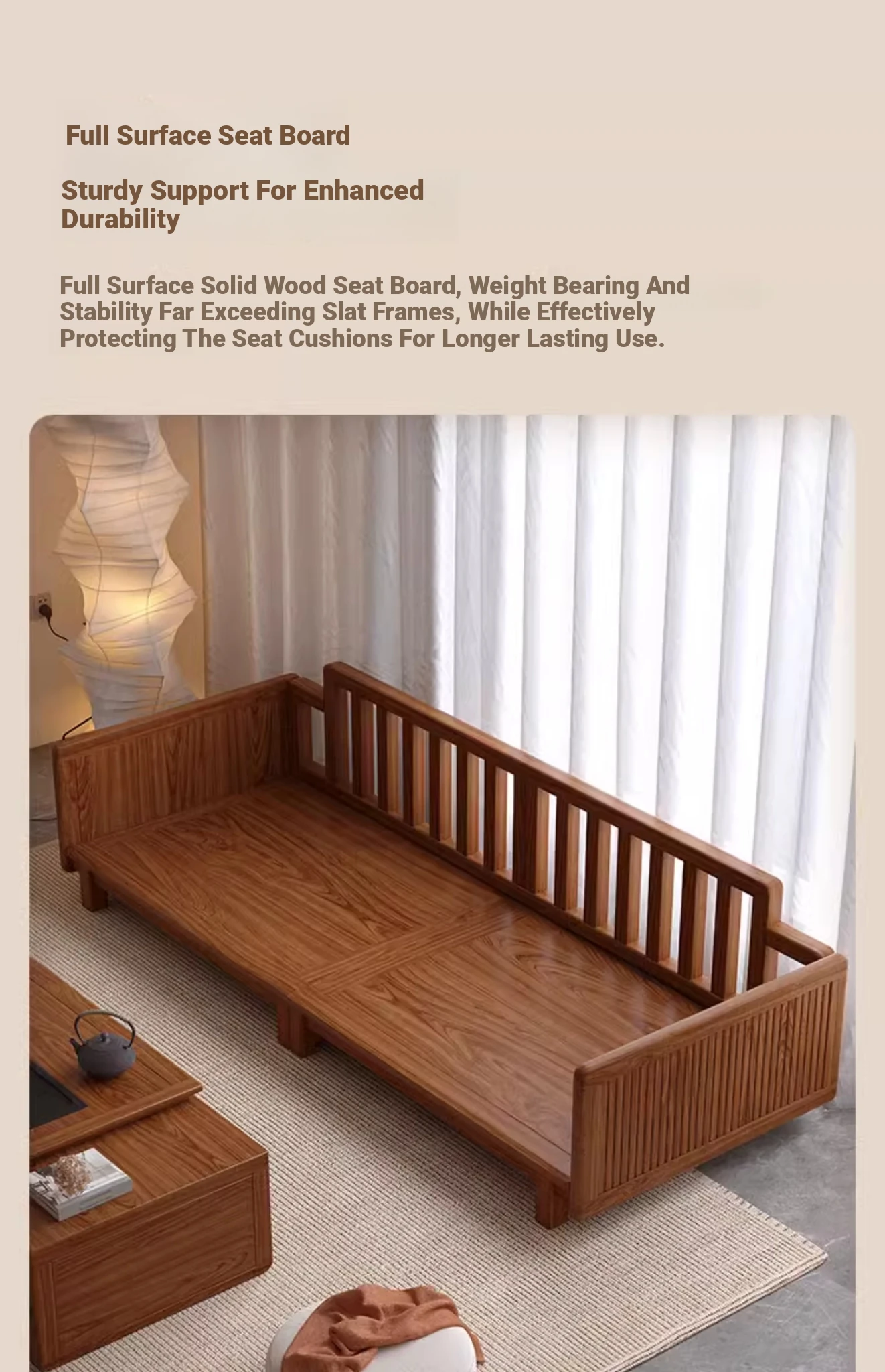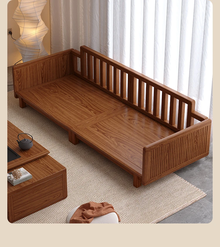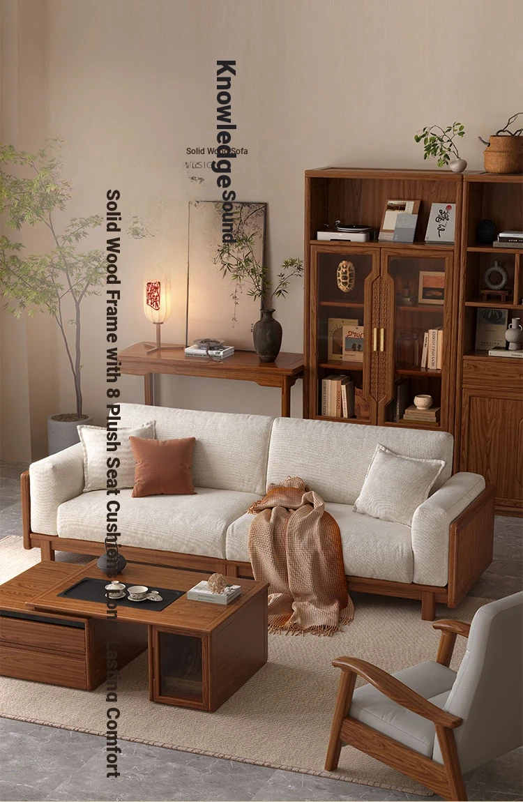 Modern Chinese Style Solid Wood Sofa Set: Versatile Elm Fabric Sofa for All Seasons, Complete with Coffee Table and TV Cabinet - Perfect for Your Living Room!