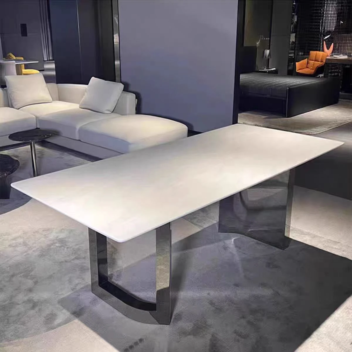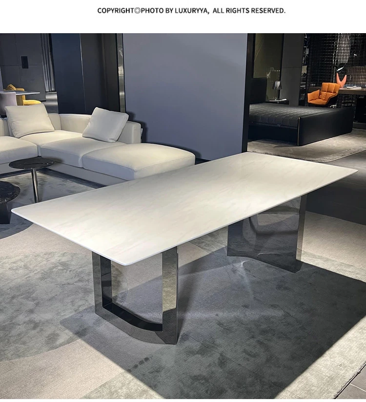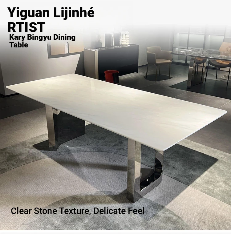 Modern Minimalist Dining Table with Calacatta Marble - Elegant Villa Dining Set with Luxurious Stone Chairs for Home Use