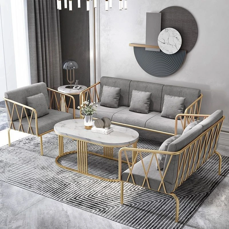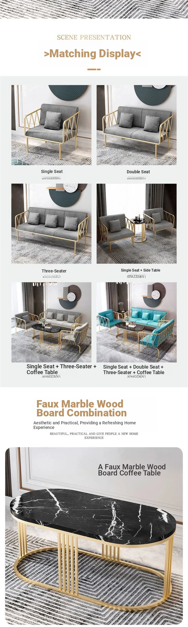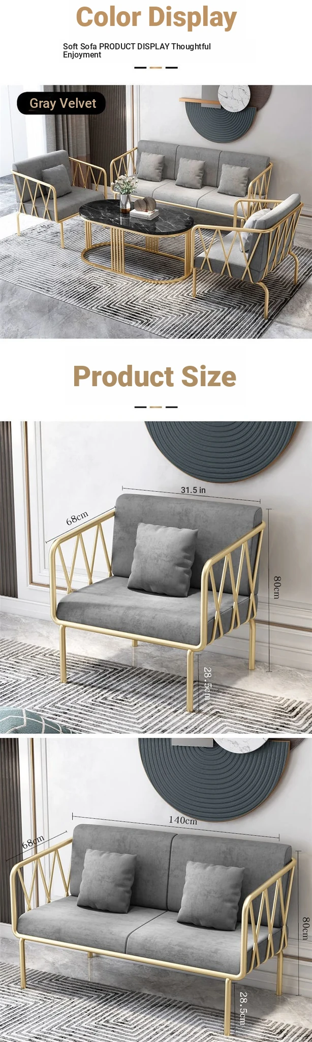 Modern Minimalist Luxury Gold Iron Sofa - Trendy Single Chair for Clothing Stores, Living Room Sofa and Coffee Table Set