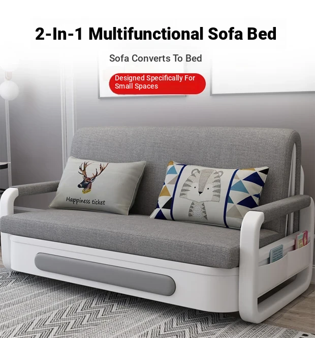 Multi-Functional Foldable Sofa Bed - 1.5m Space-Saving Pull-Out Sofa for Small Living Rooms, Dual Purpose with Storage for Couples