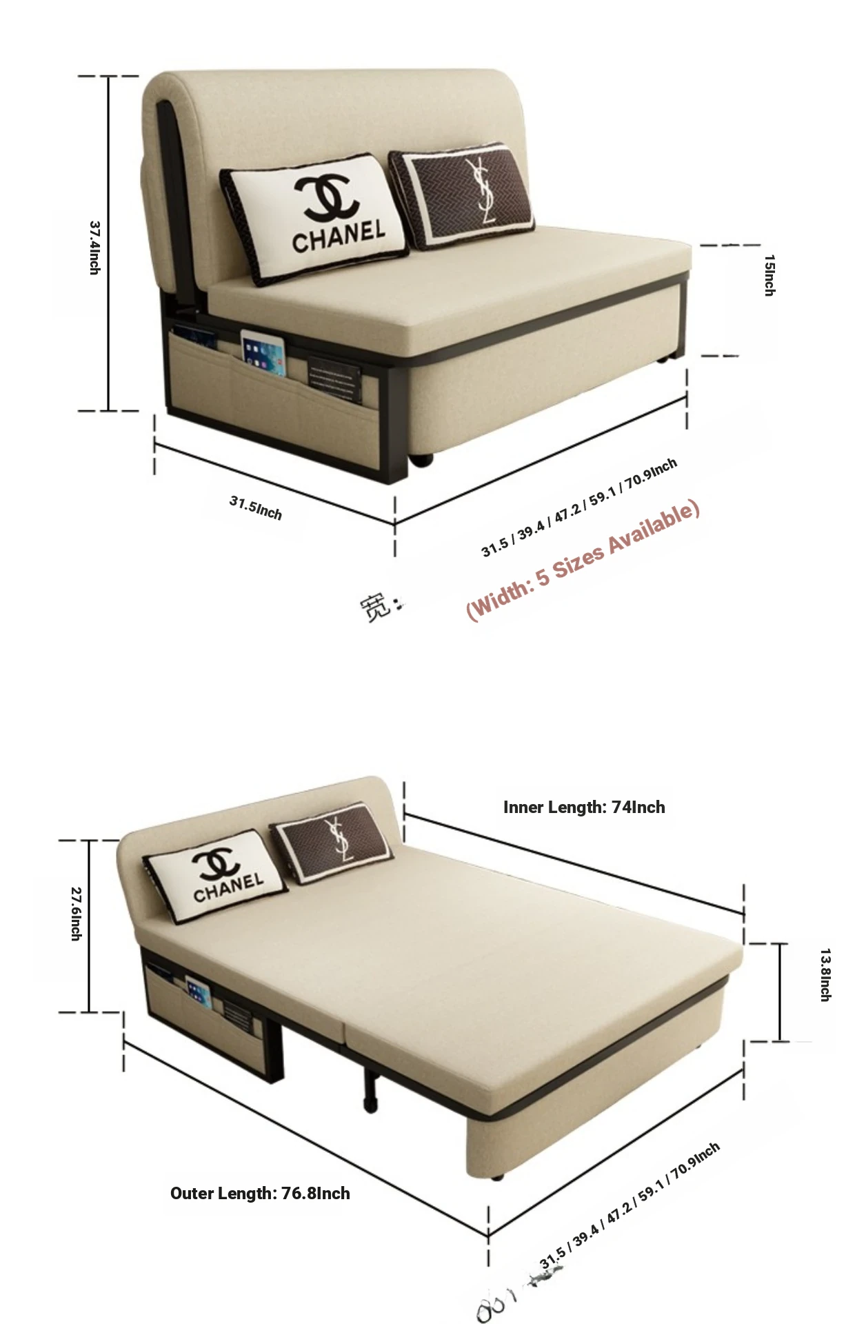 70.87 in 2.76in sponge cushion with storage