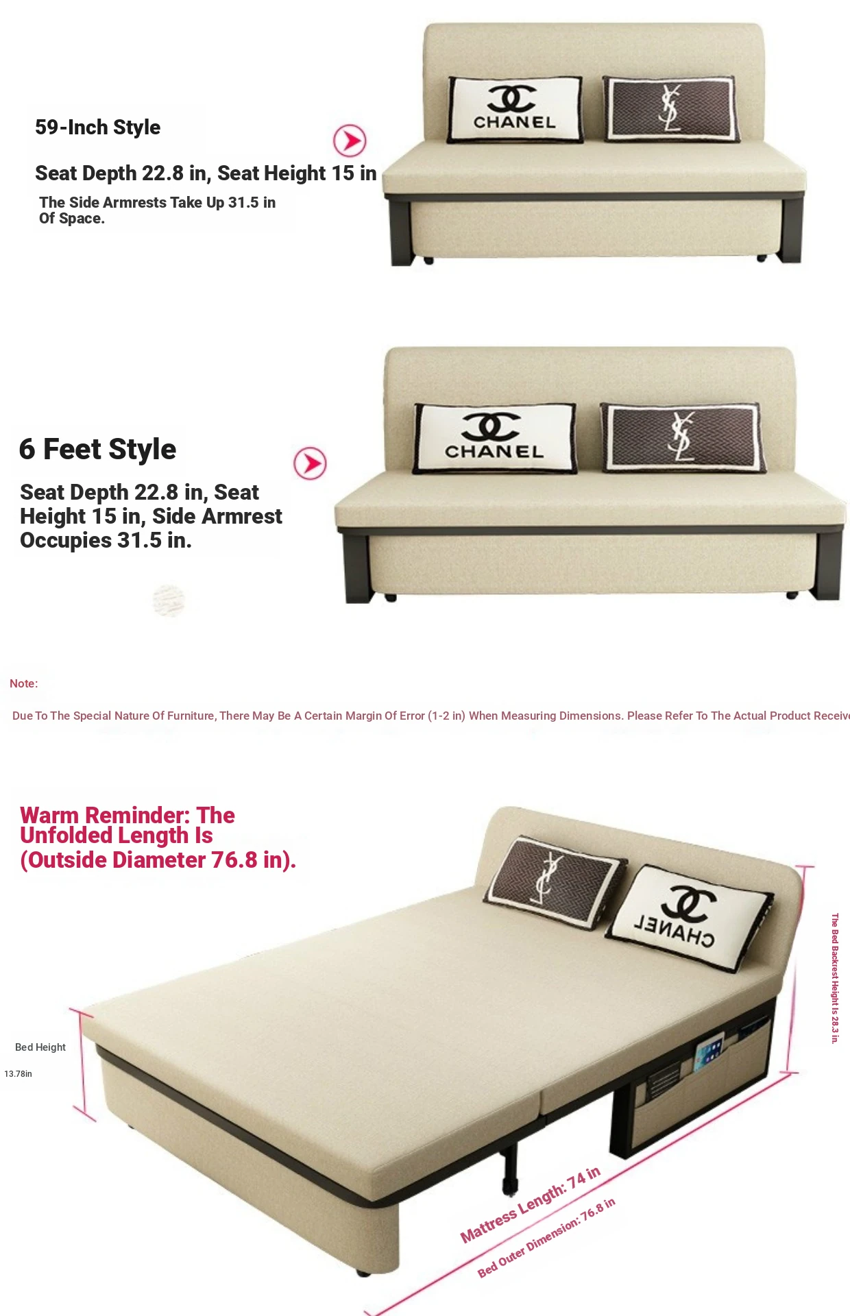 59.06 in 2.76in sponge cushion with storage